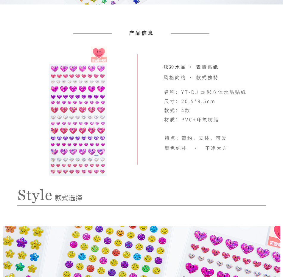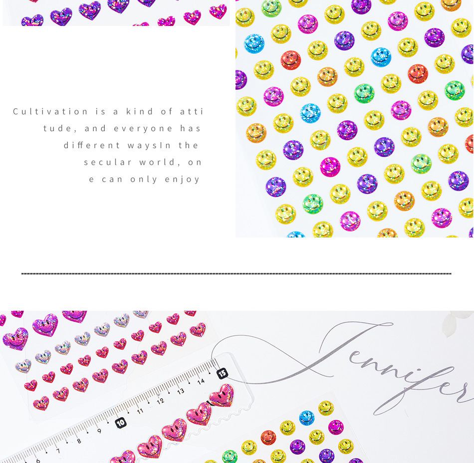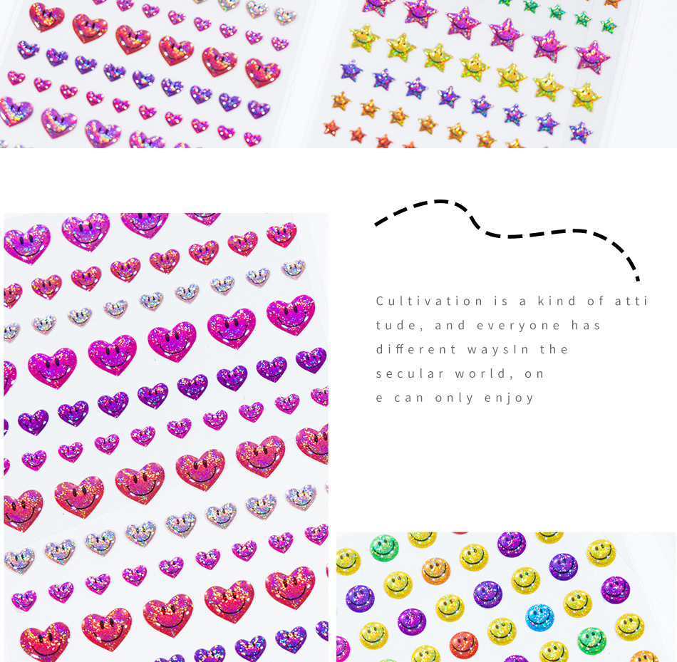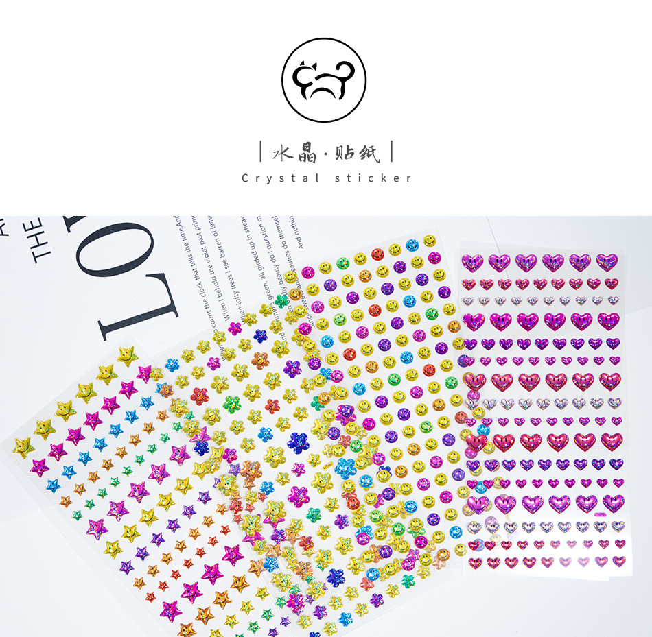 カラフルな小さな笑顔の立体クリスタルステッカー星花愛ハッピー表現子供の手作り教育ご褒美ステッカー