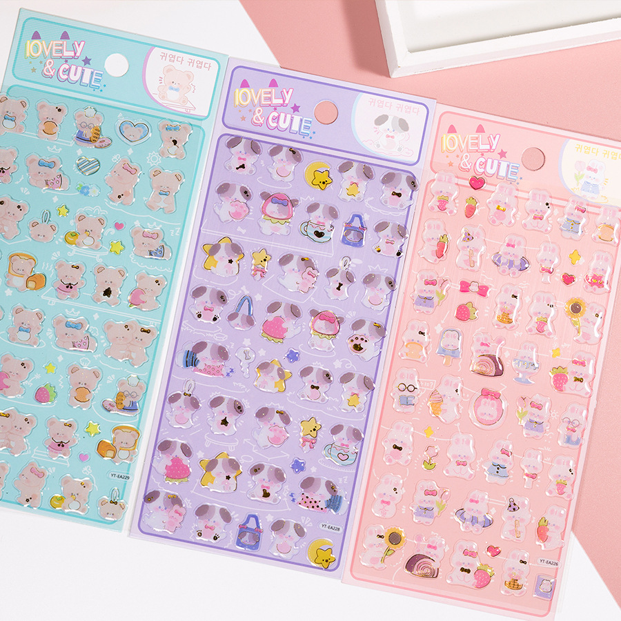 かわいいウサギ、犬、クマの立体クリスタル子供用ステッカー漫画動物ご褒美ステッカー手作りフォトアルバム装飾