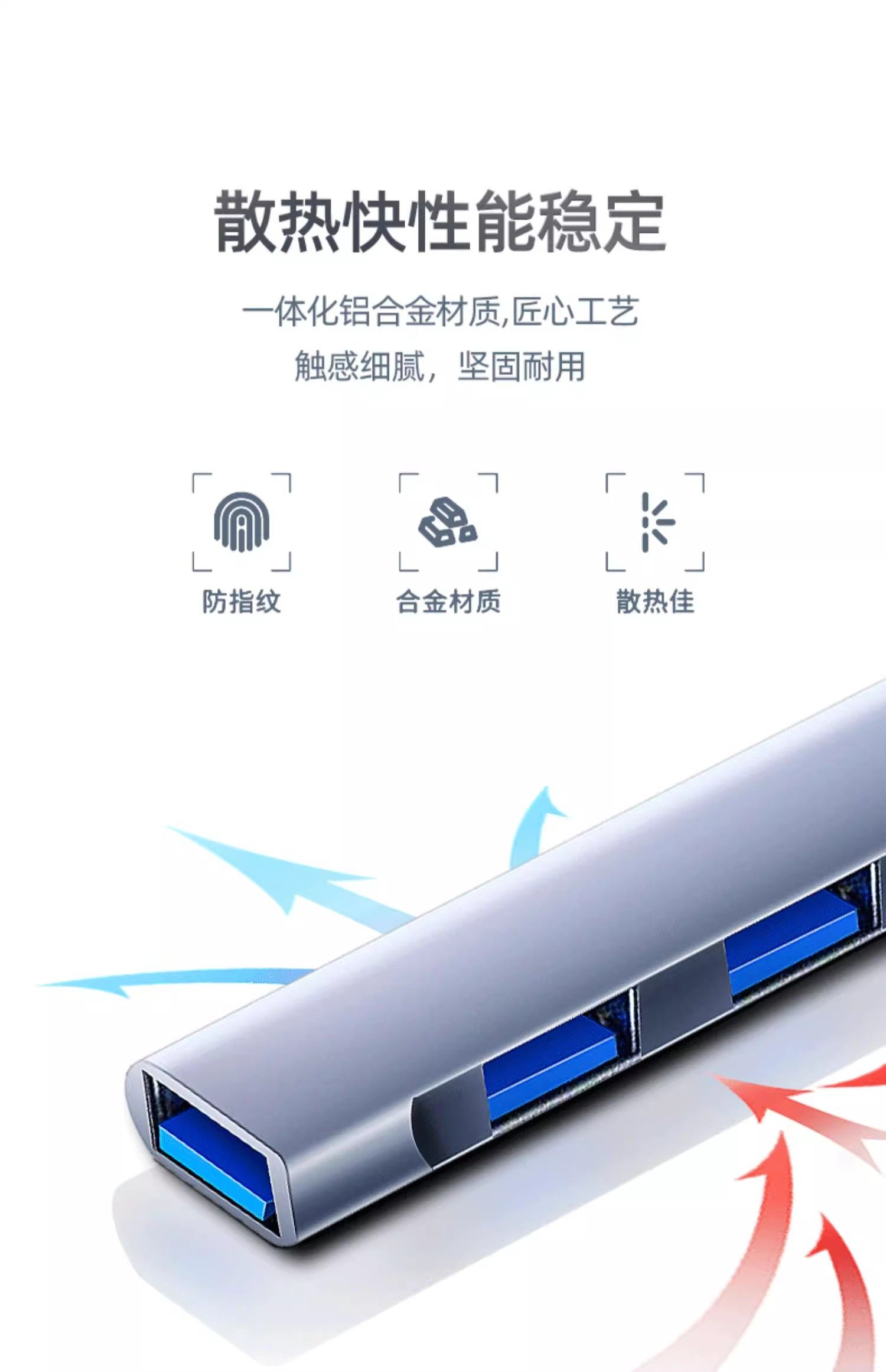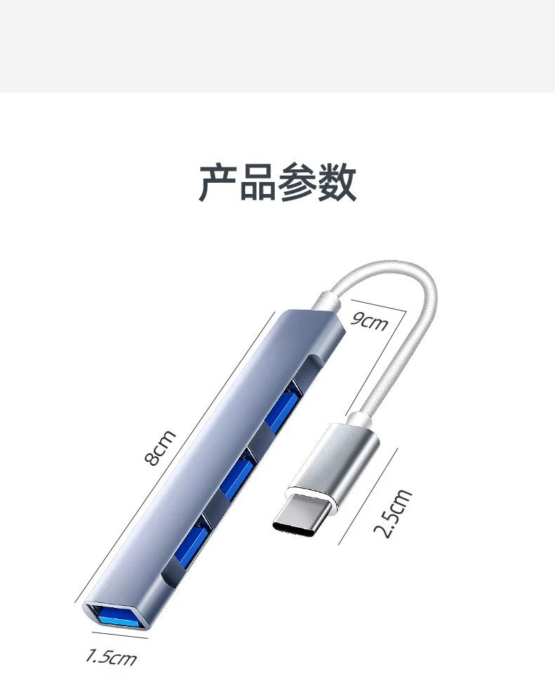 usb3.0分线器一拖四typec分线器hub扩展坞笔记本电脑usb3.0集线器