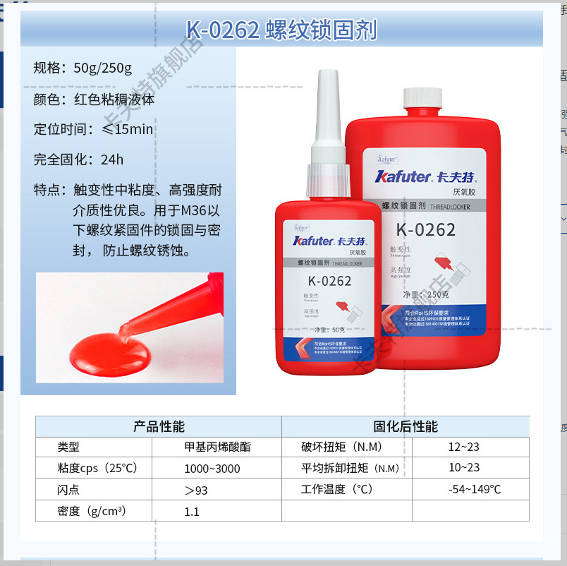 Kraft アナerobic 接着剤 k-0262 ネジロックシーラント 高強度アナerobic 接着剤シール固定緩み止め