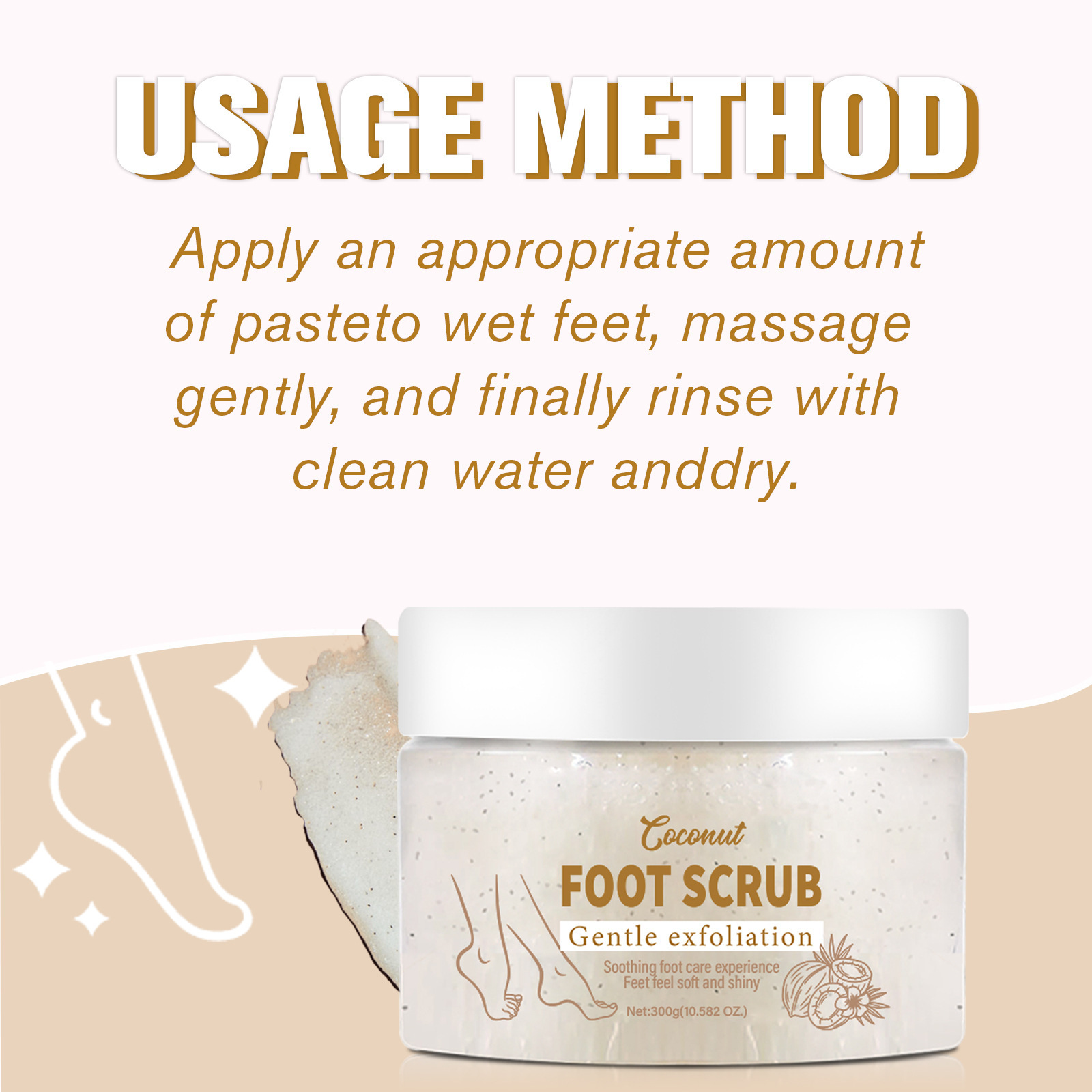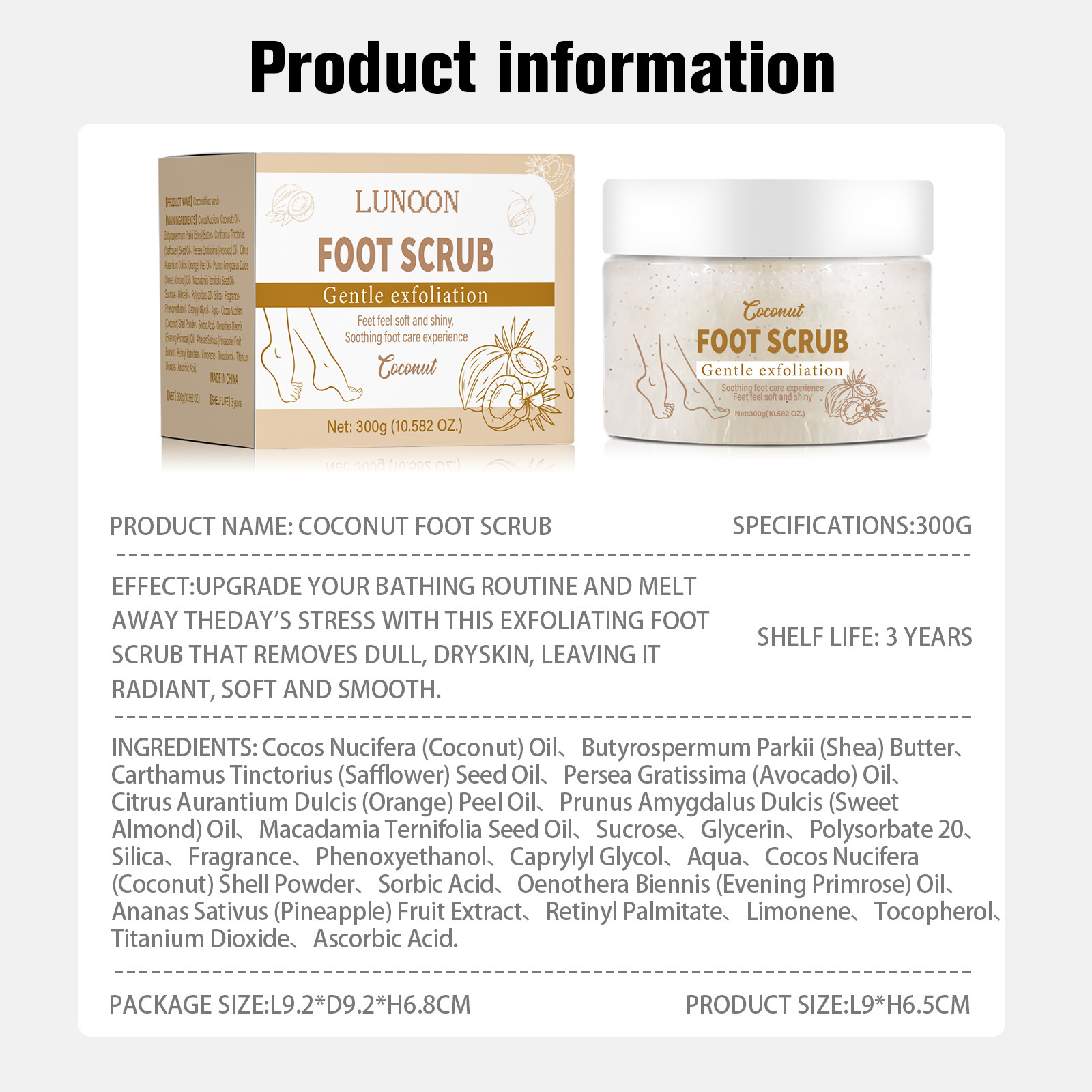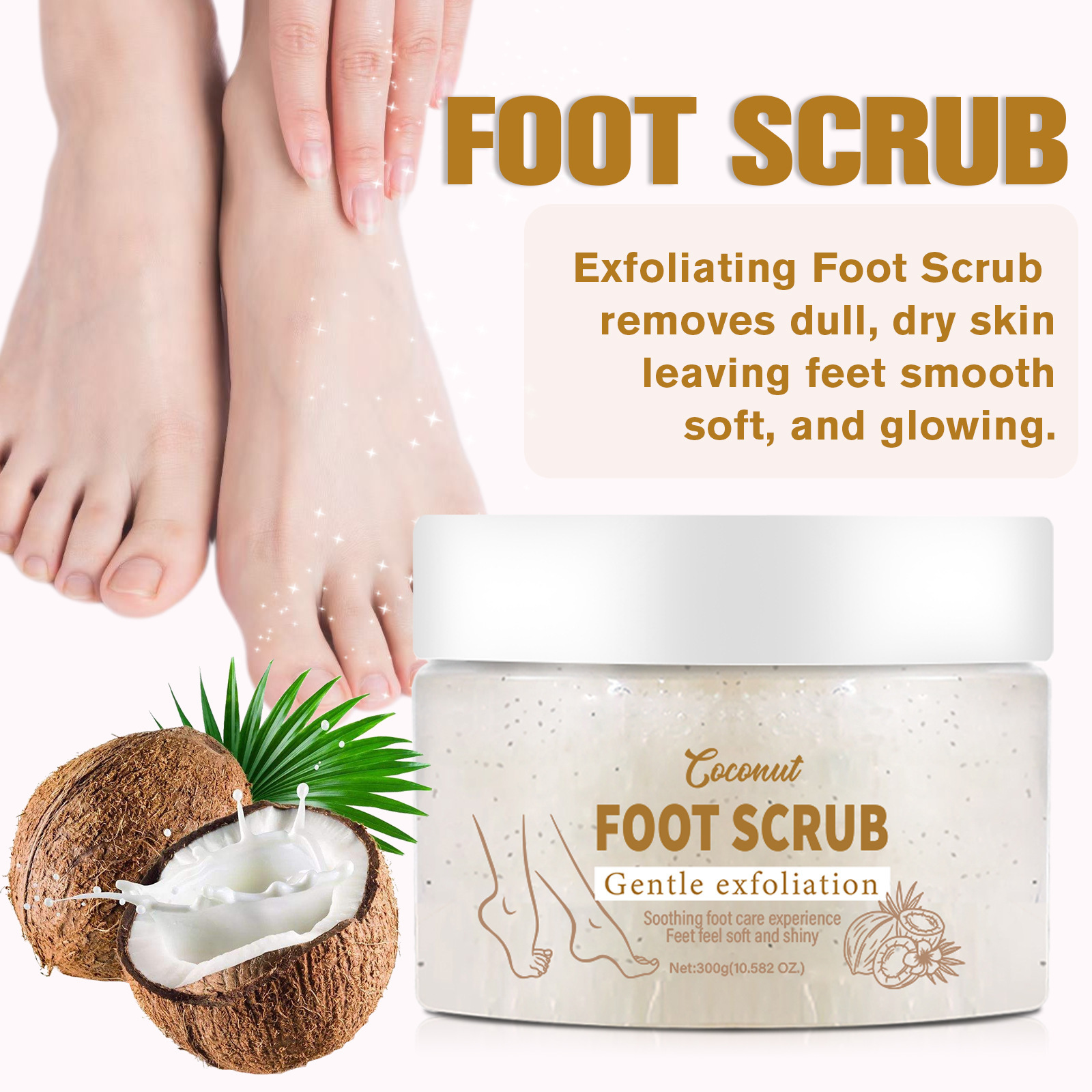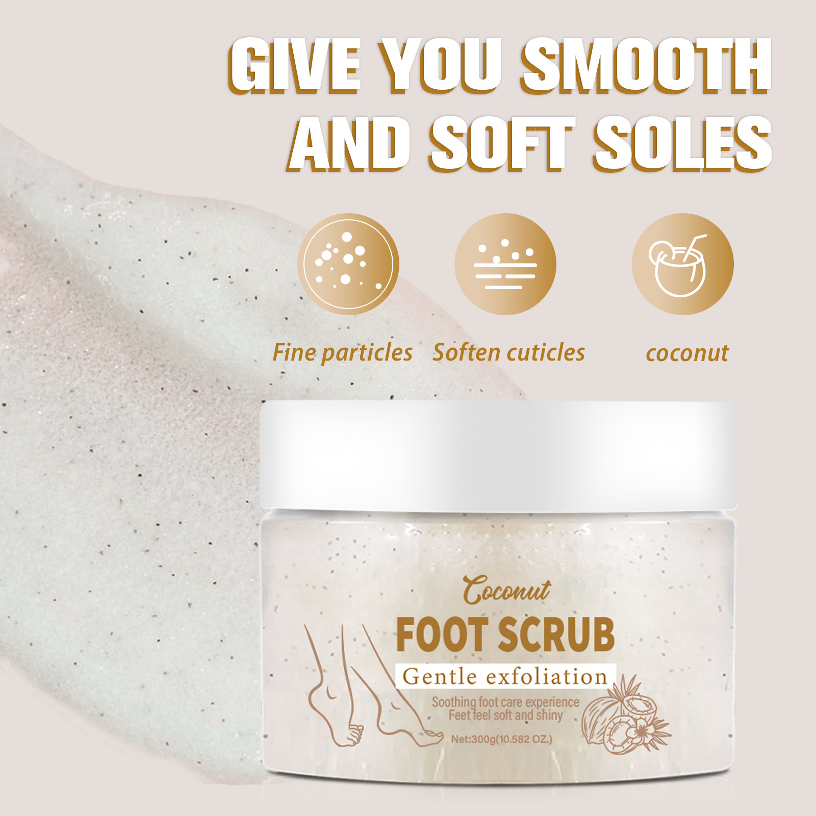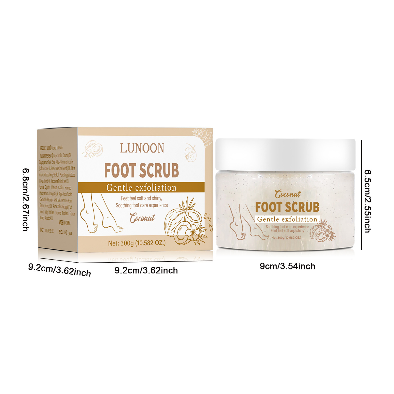 LUNOON フットスクラブ 足の洗浄、保湿、若返り肌の保護 ココナッツの香り 300g