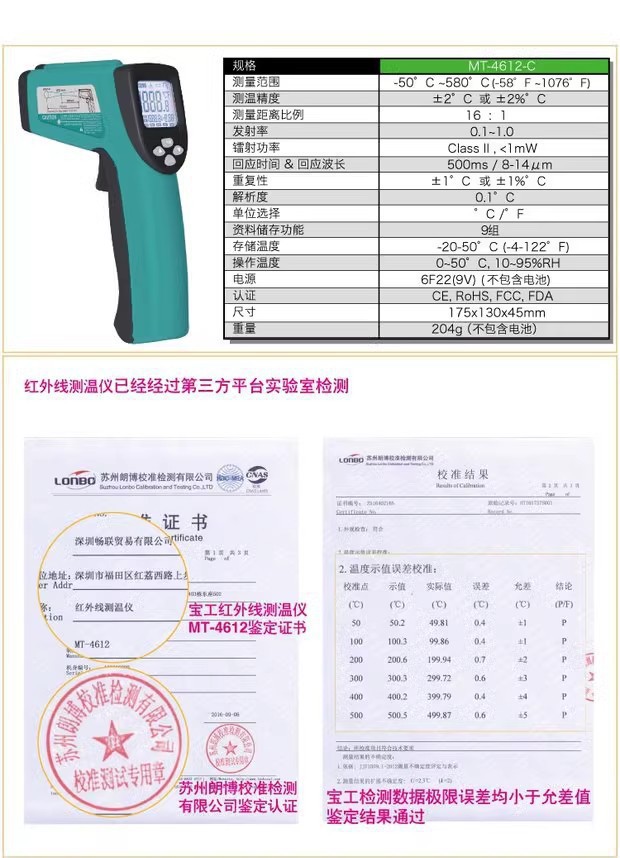 台湾 Baogong MT-4606-C 遠赤外線温度計ハンドヘルドミニ温度計工業用