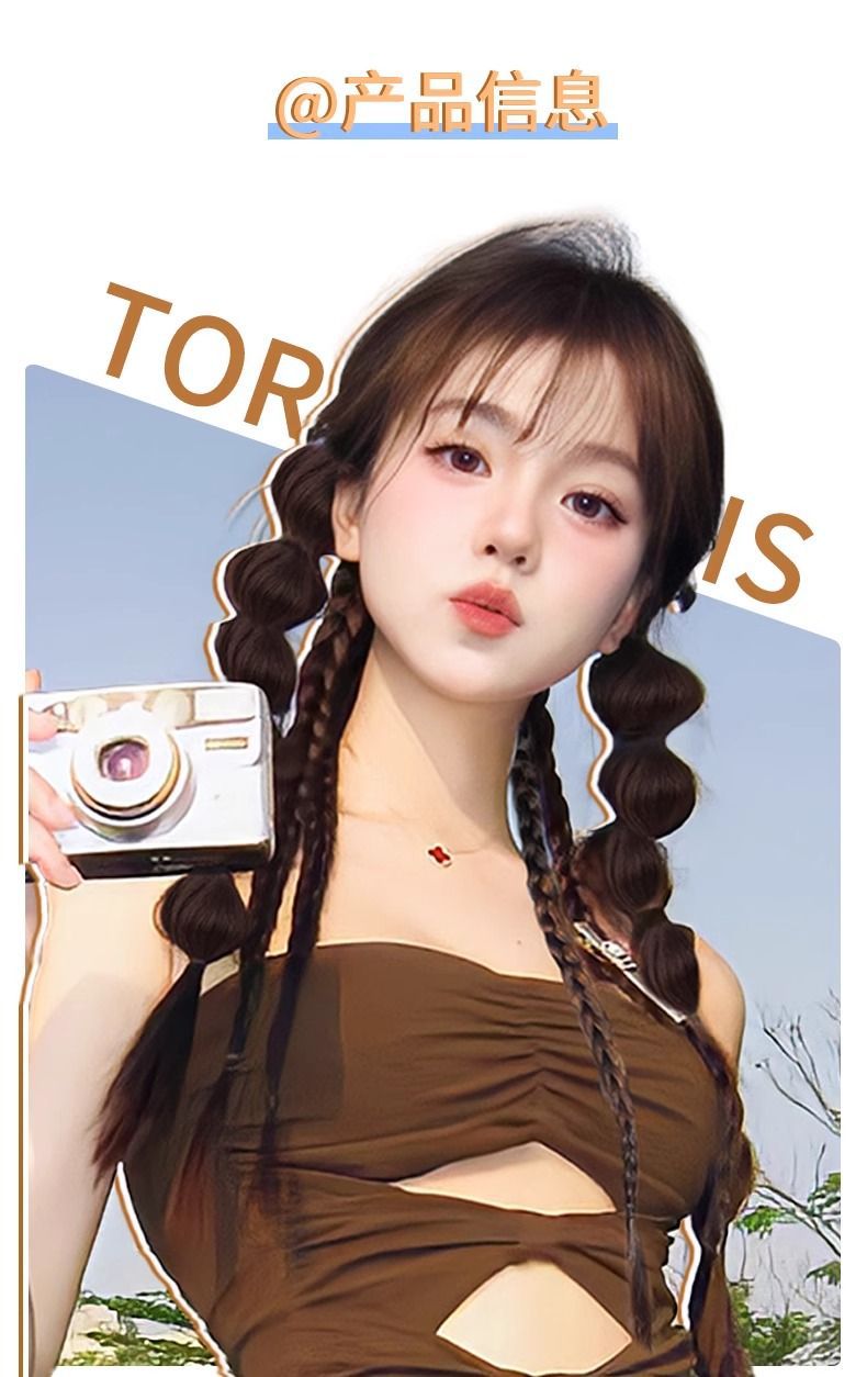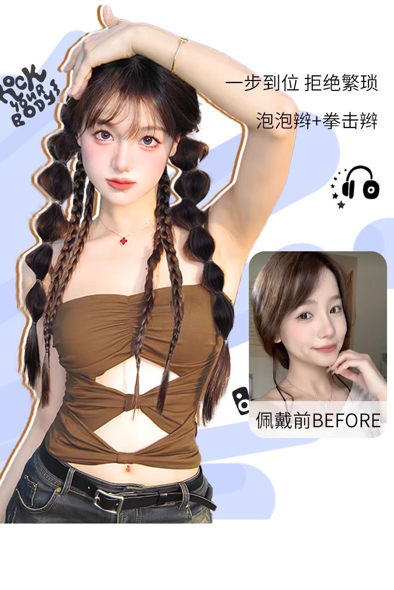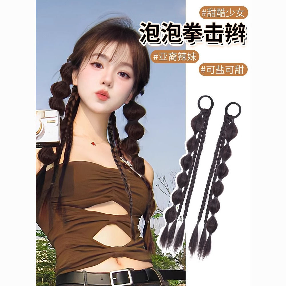 女性用ウィッグ、バブル三つ編み、甘くてクールな女の子、ナチュラルなハイライト、ロング三つ編み、ネットセレブ、ランタンボクシング三つ編み、ハイポニーテールパンク