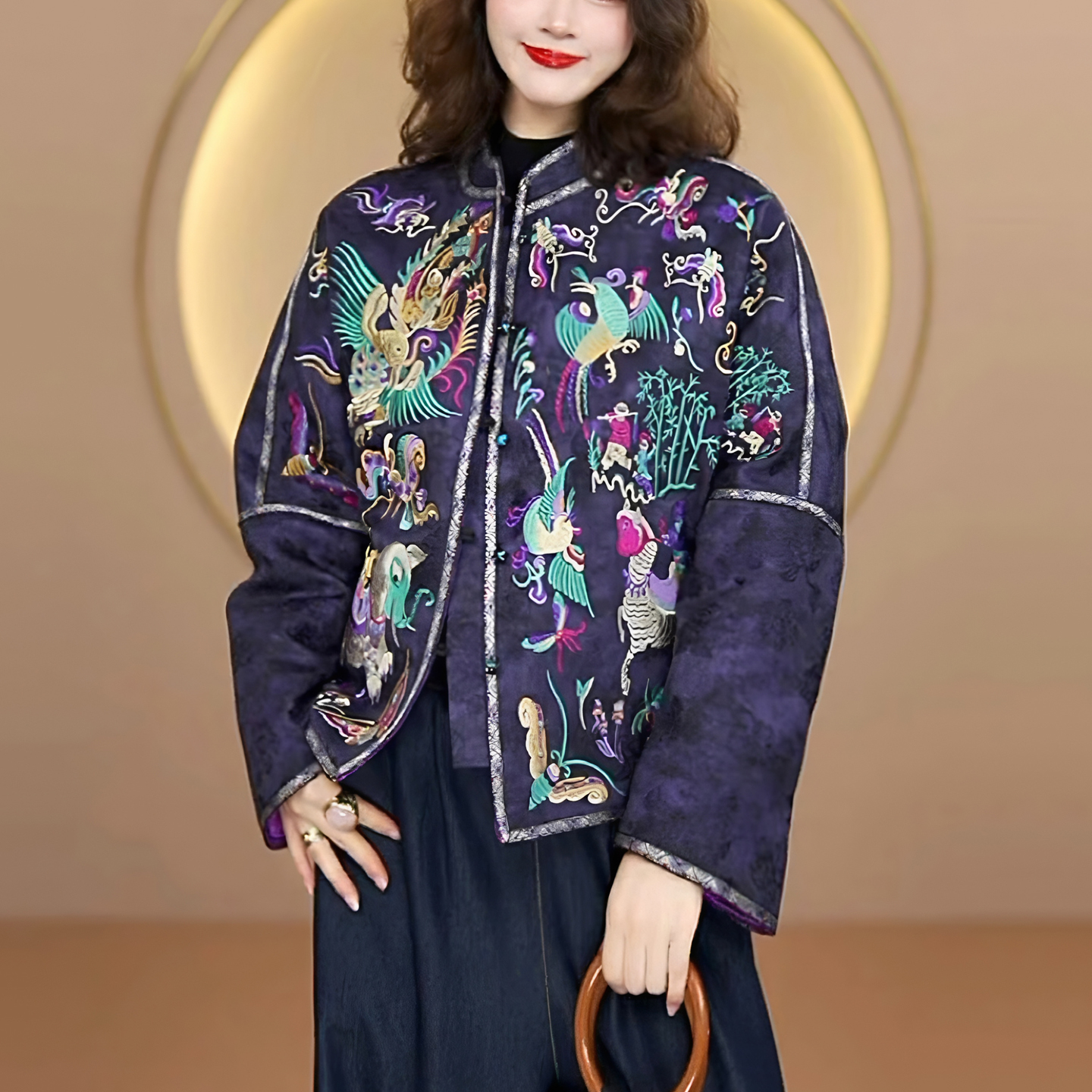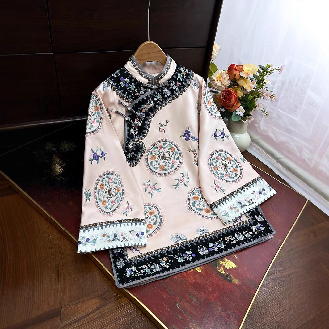 新中国式格格重工業刺繍盤ボタンコート女性2025春新作レトロ国風斜め襟上着