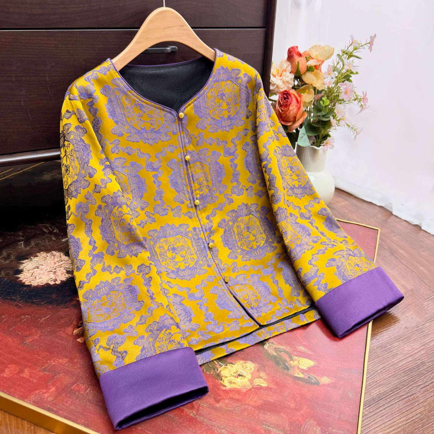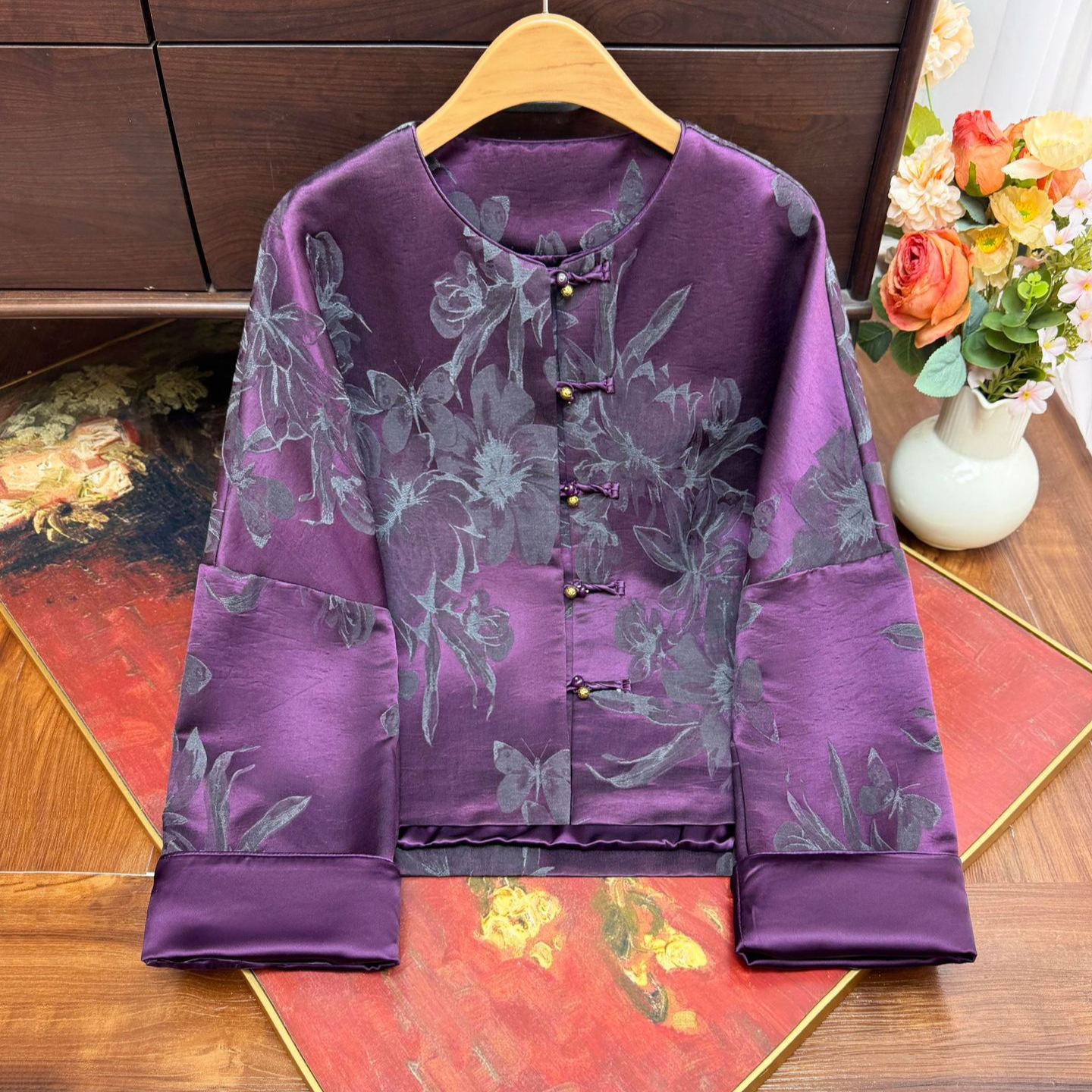 新中国式紫気東来国風コート女性2025春新作レトロ高級重工刺繍ジャカード上着