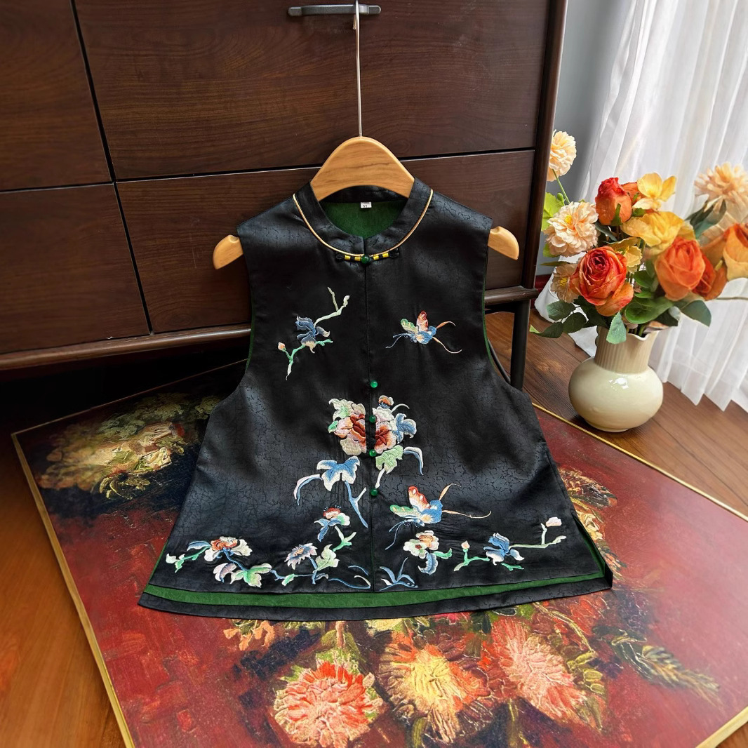 新しい中国風リバーシブル刺繍ベスト2024秋ベスト国民風レトロひび割れ模様ベスト芸術風