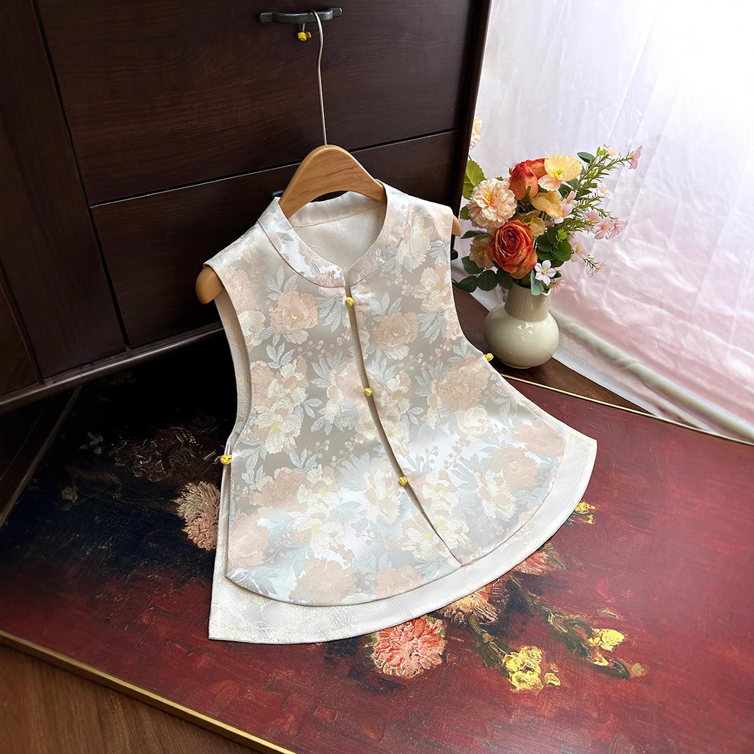 新中国式レトロ国風両面着ベストレディース2025春新作高級織錦織牡丹カン肩ベスト