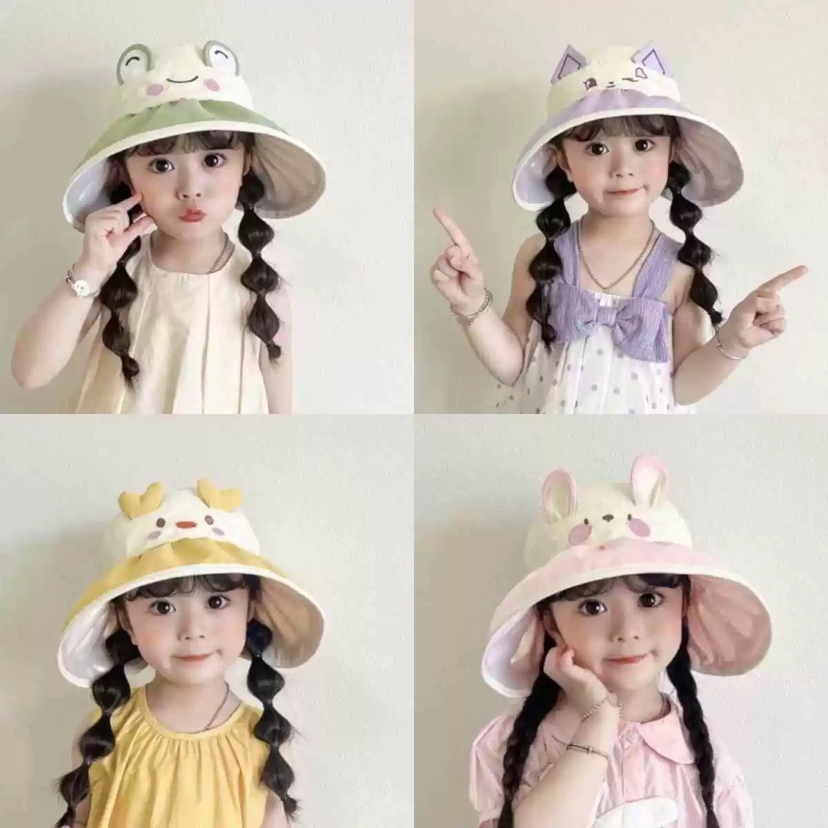 夏用子供用空頂日よけ帽子、かわいい女の子用紫外線防止サンハット、折りたたみ式大きなつばのフィッシャーマンハット、幼児用