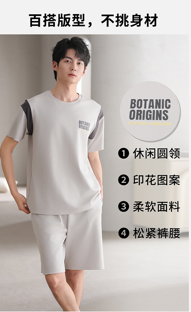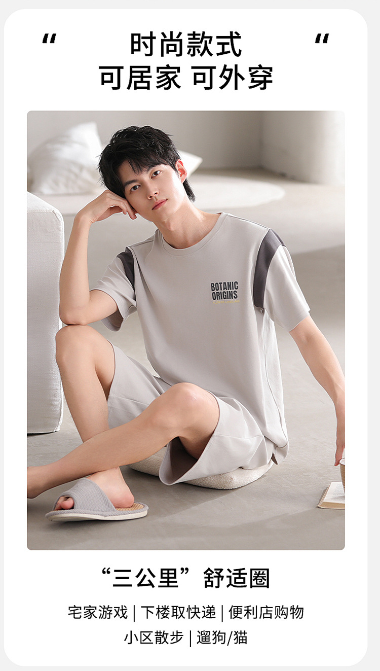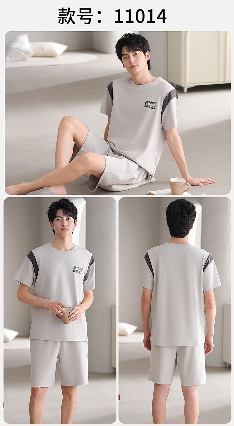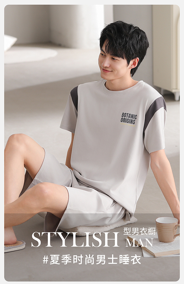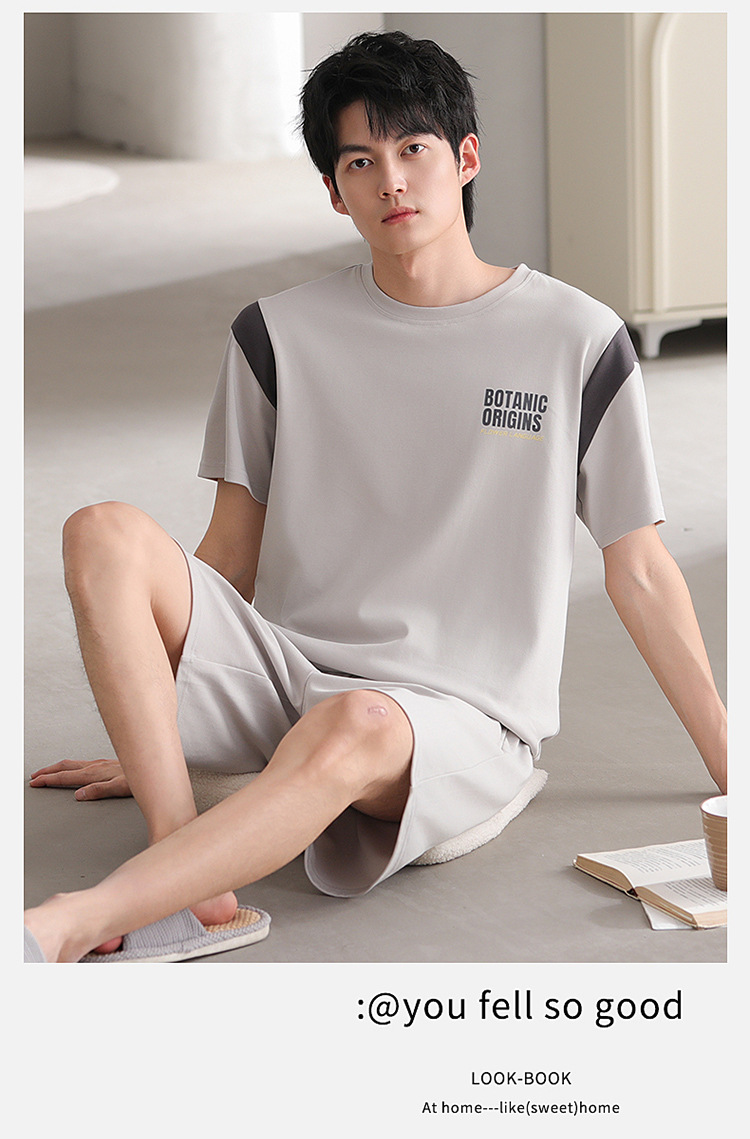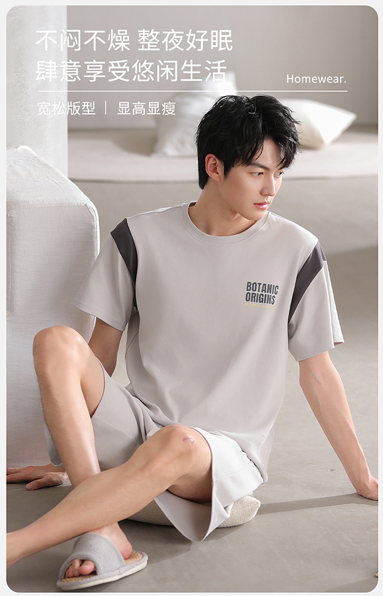 男性用パジャマ、夏用純綿薄手半袖ショーツアウタースーツ、カジュアルで涼しい綿プルアップ大きいサイズの涼しいホーム服
