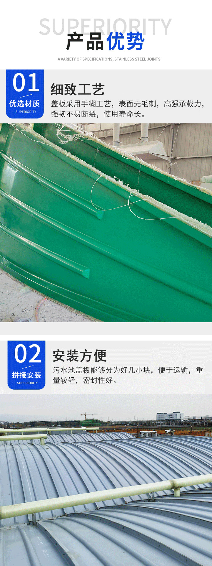 玻璃钢平盖板污水池厌氧池拱形弧形盖板密封集气罩防滑玻璃钢盖板