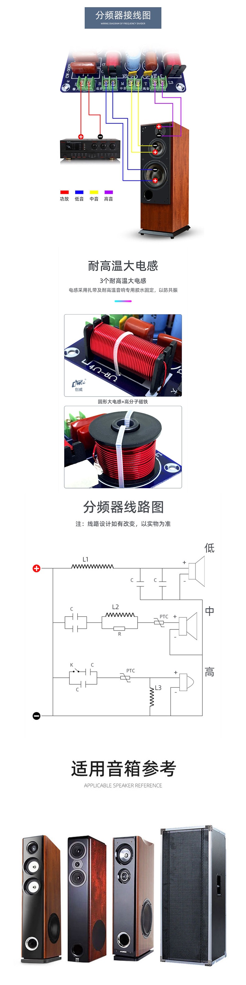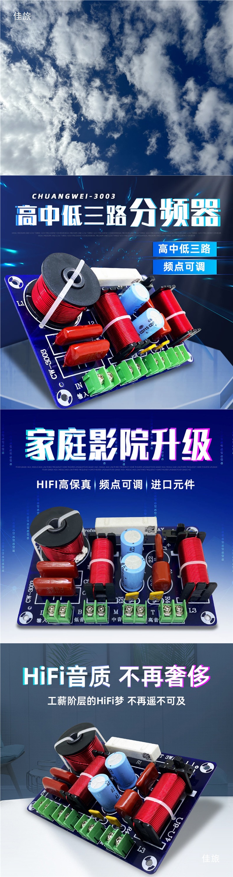 250W高分频器三分频发烧级HIFI家庭影院高中低音箱改装分音器