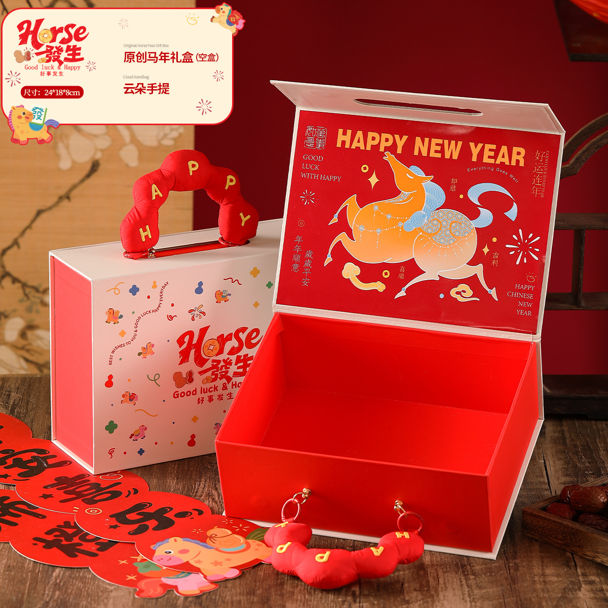 2026马年新年礼盒空盒过年坚果年货包装盒手提立体翻盖年会礼品盒