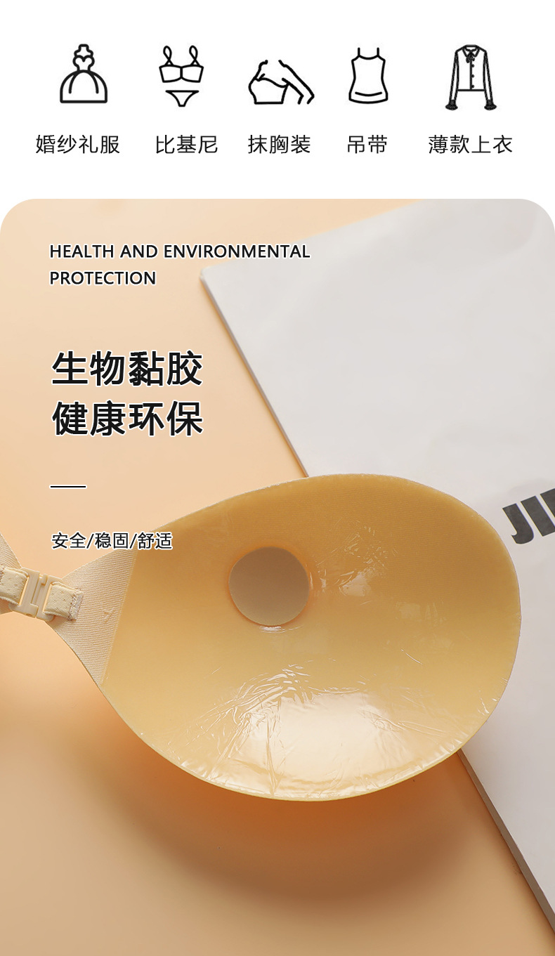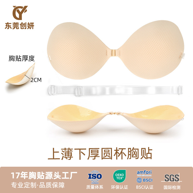 メーカー供給の粘着式インビジブル胸パッド、バイオシリコン製下着胸パッド、超厚スポンジパッド、胸パッド付き