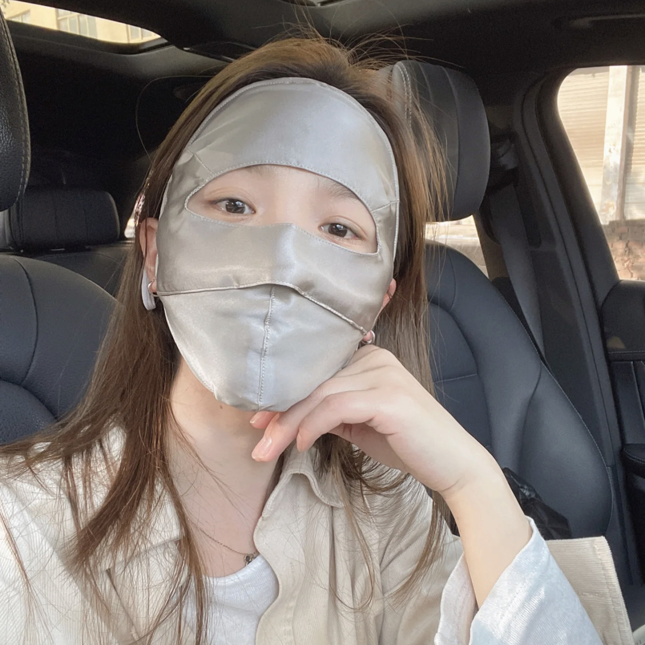 シルク製防風・日焼け止め保護マスク、フルフェイスマスク、紫外線・ブルーライト対策、桑蚕シルク、女性医療美容用フルフェイス