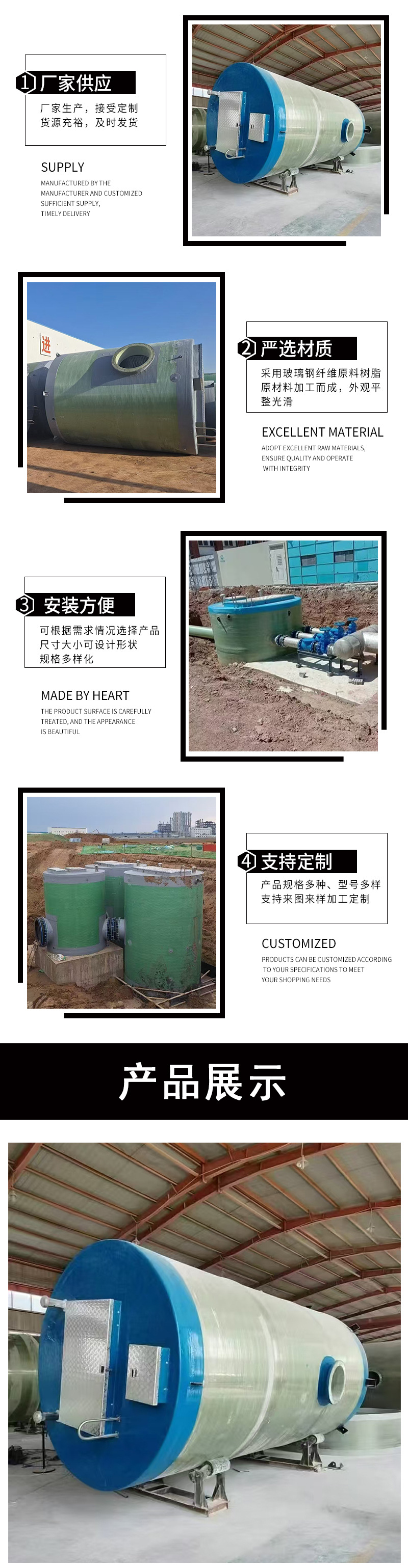 玻璃钢地埋式泵站农田灌溉泵站污水提升远程智能玻璃钢一体化泵站