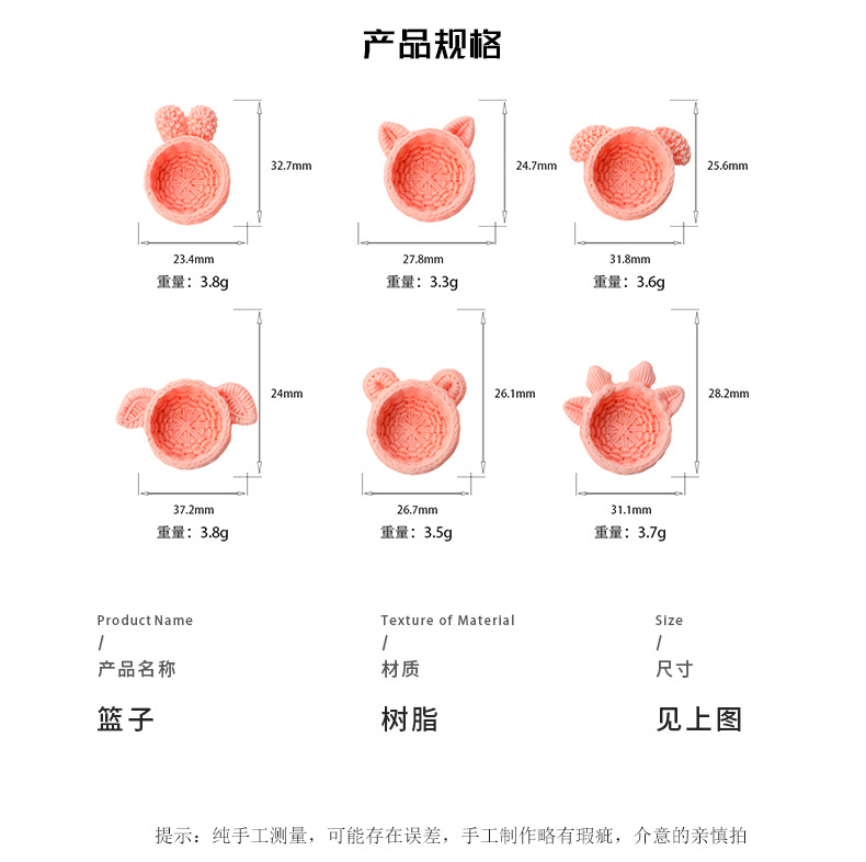 立体樹脂カラー両耳付辺編籠DIYアクセサリーのキーホルダー