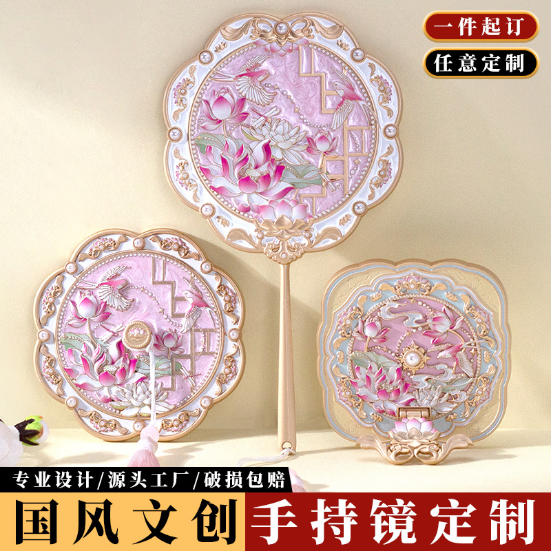 手持ち携帯化粧鏡カスタム無料デザイン古風文創ハンドル鏡立体レリーフ国風プレゼント