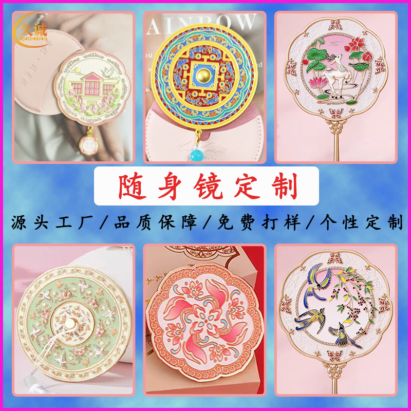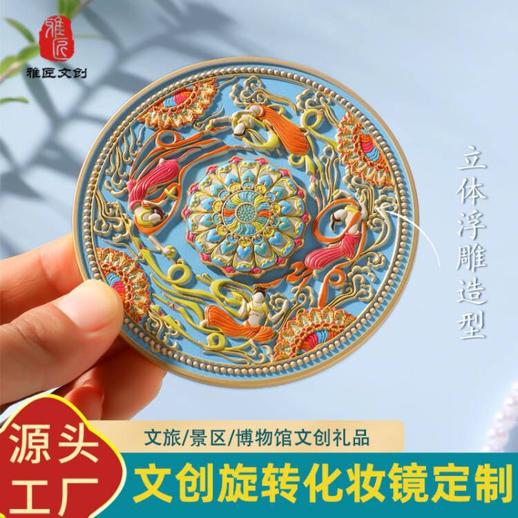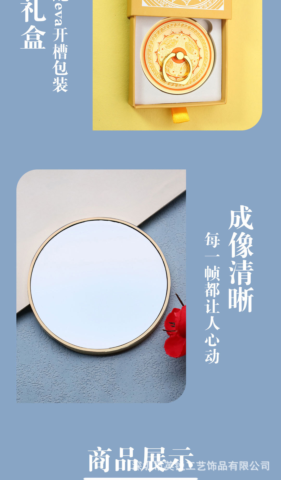 新款金属随身镜立体浮雕国潮便携式随身镜景区文旅手持化妆镜定制