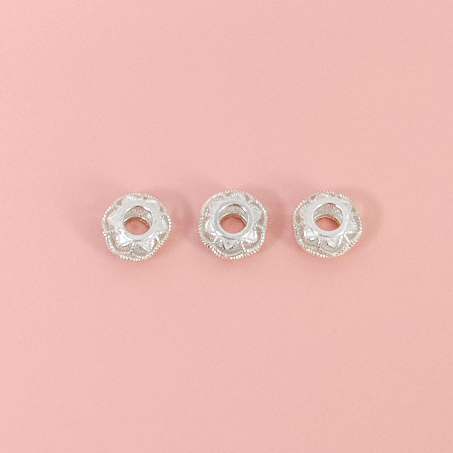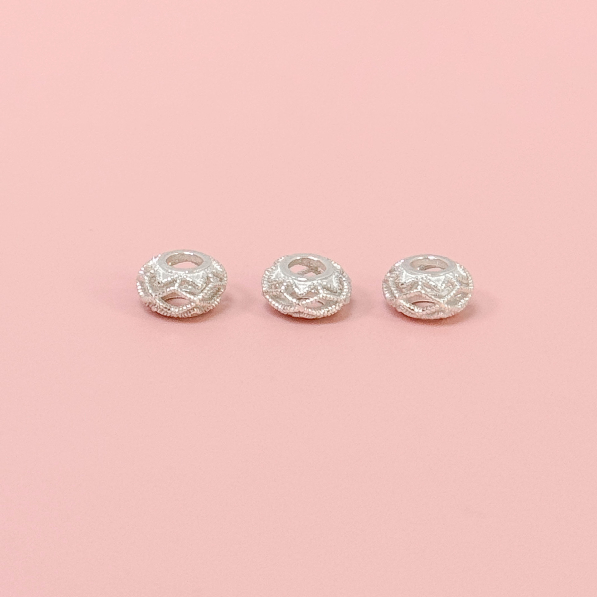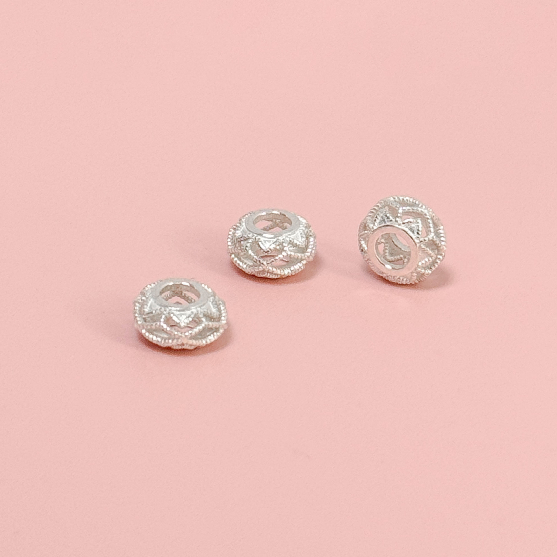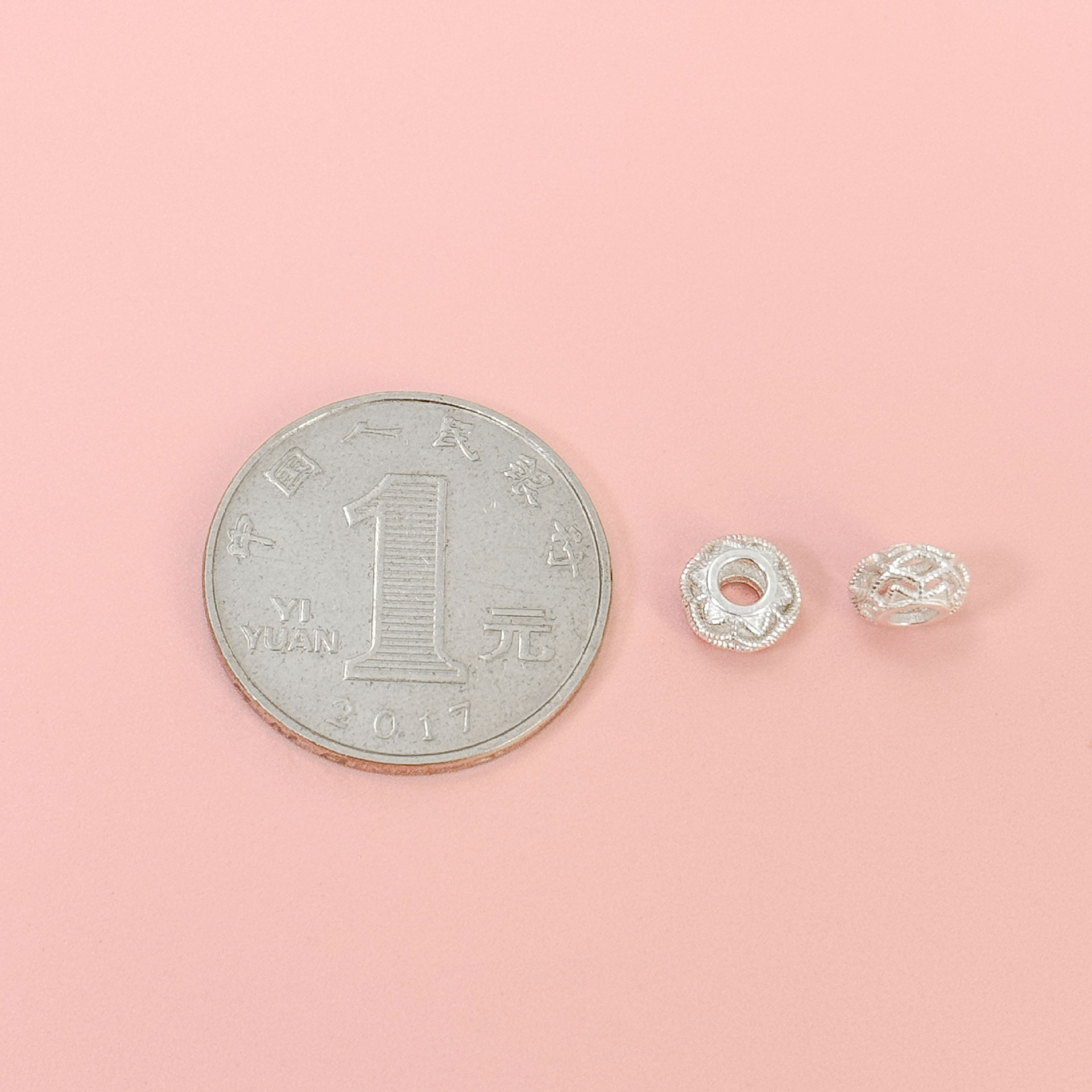 S999足銀3mm透かし彫りの小さい銅銭の隔珠の平玉の手作りのDIYのビーズのブレスレットのネックレスの貨幣の散珠の部品