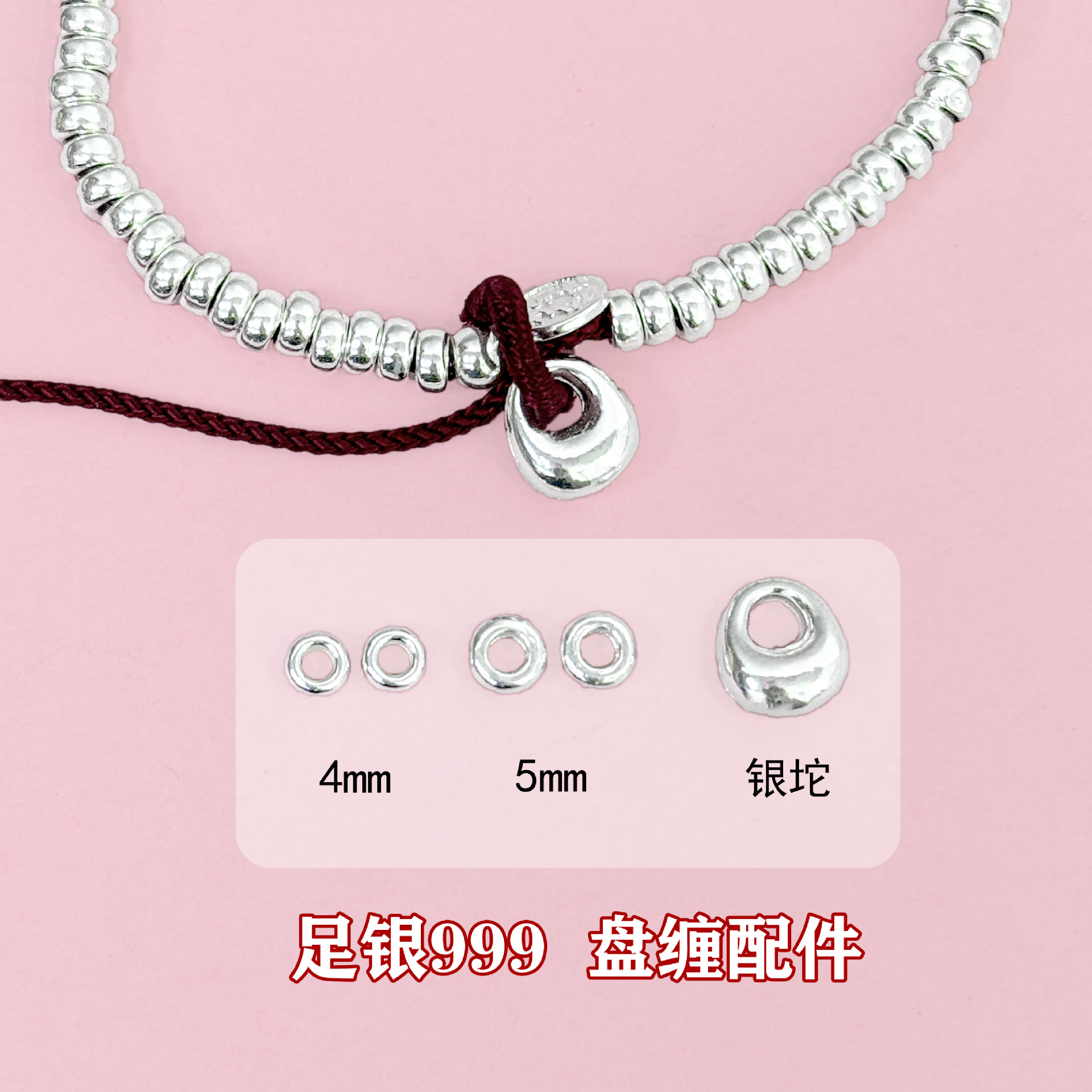 S999足銀亮銀黄金万両ボタン頭国風ストラップdiy水晶ブレスレットネックレスビーズ編みひも