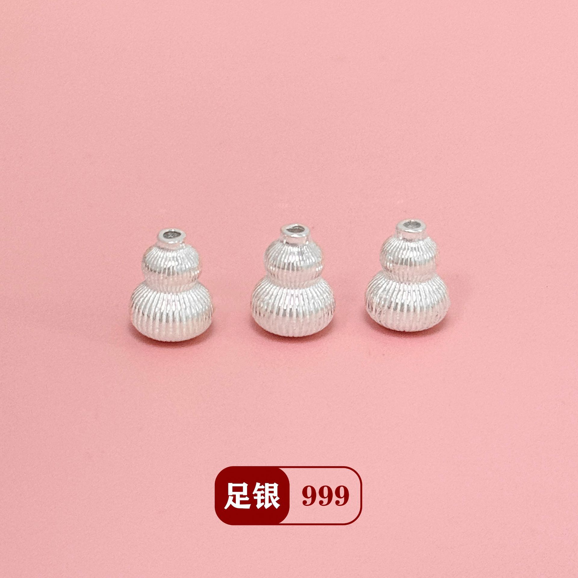 s999足银竖纹拉丝葫芦3D隔珠挂件diy国风手链项链串珠编绳配饰