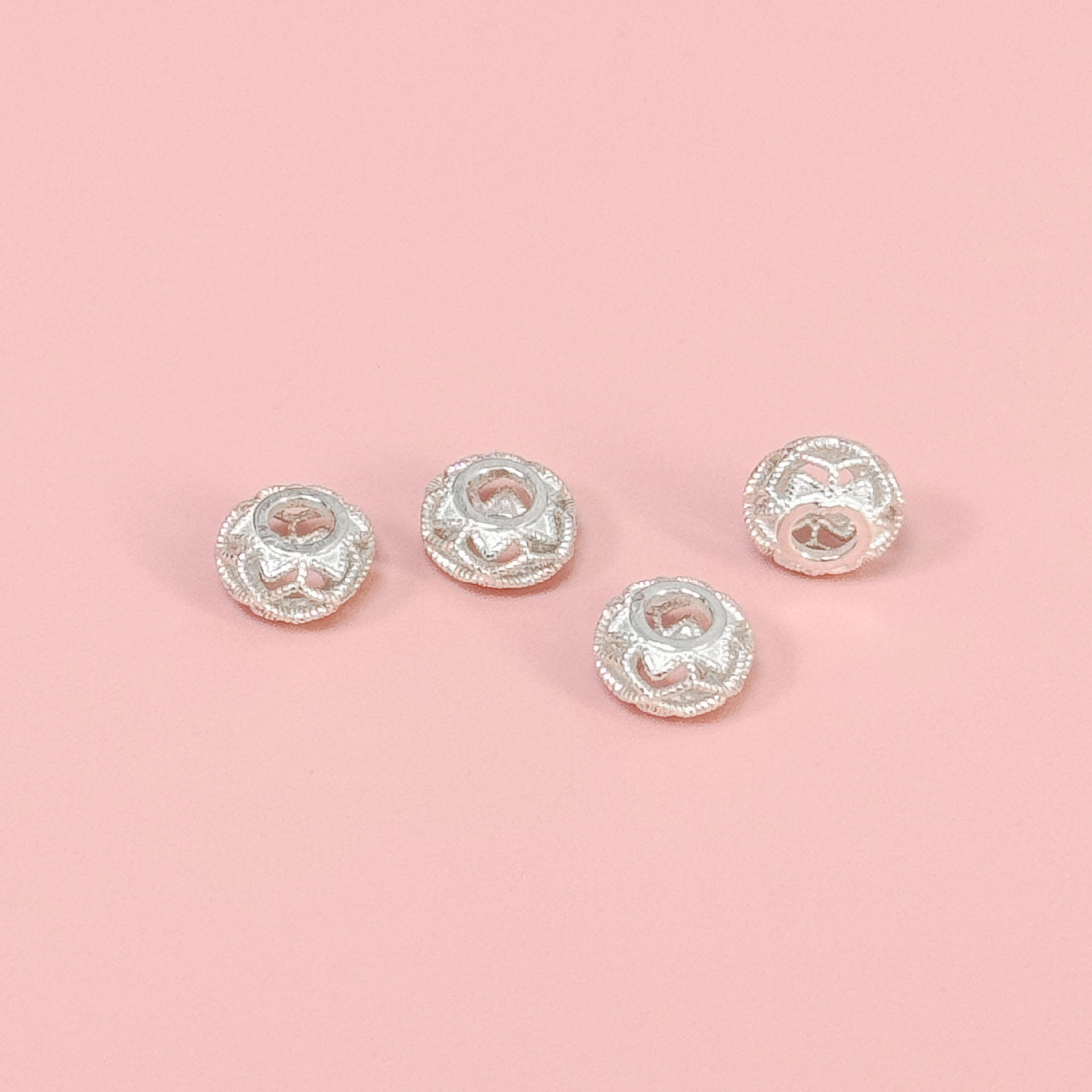 S999足銀透かし彫り花水晶手串花托スペーサーdiyブレスレット部品ビーズ編み材料