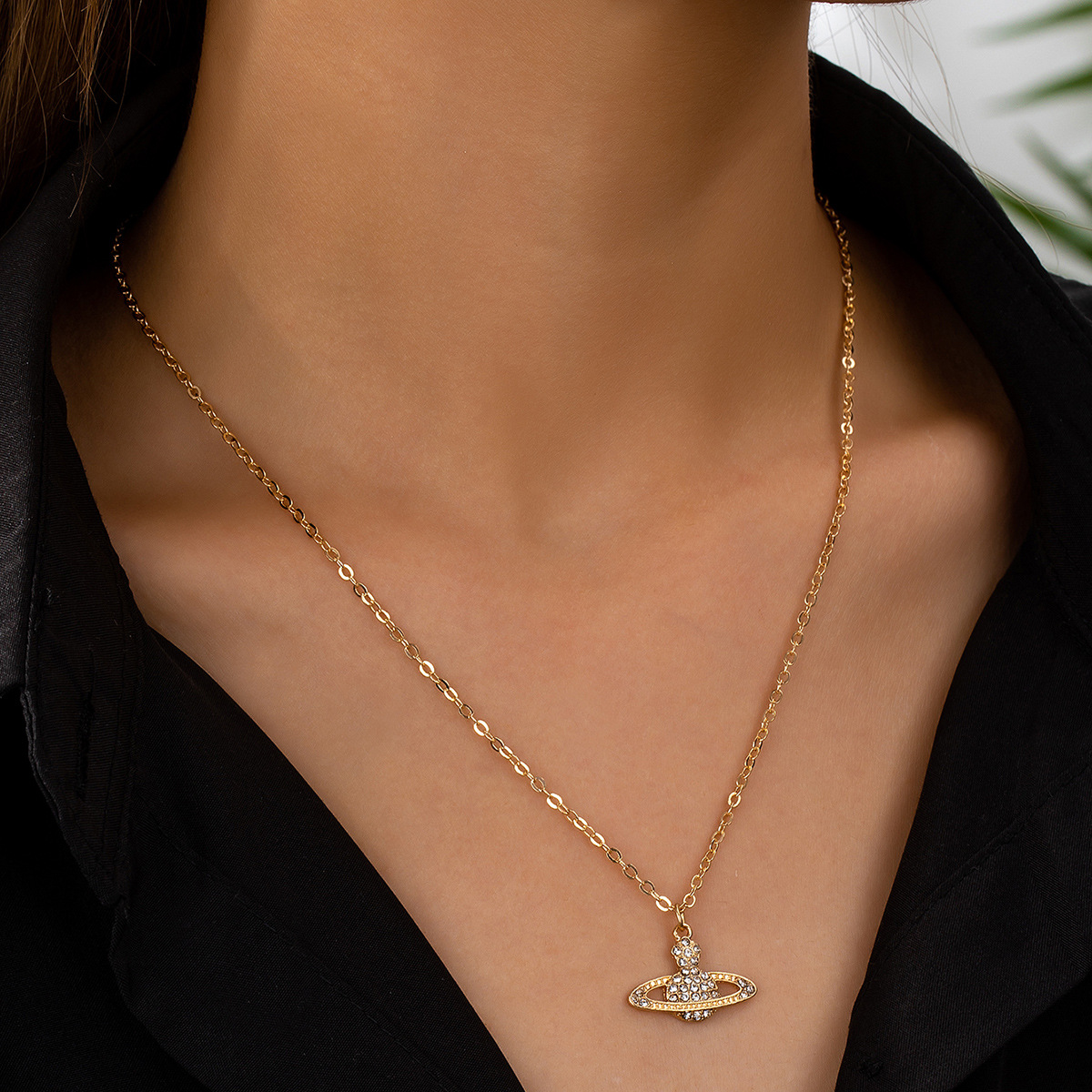 欧米の越境した新型土星の星のペンダントのネックレスの気質は軽くて豪華で優雅で、アクセサリーの日常の通勤パーティーになります。