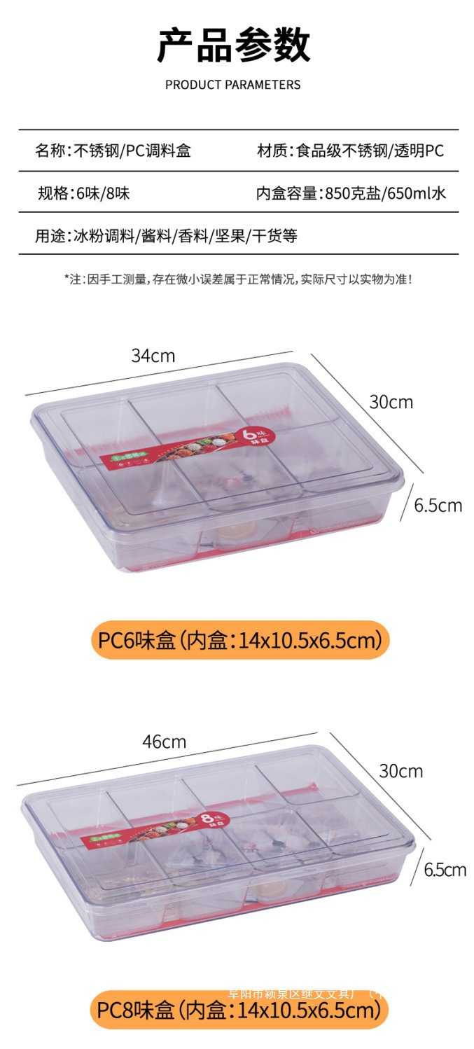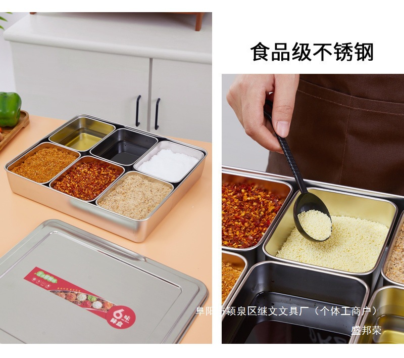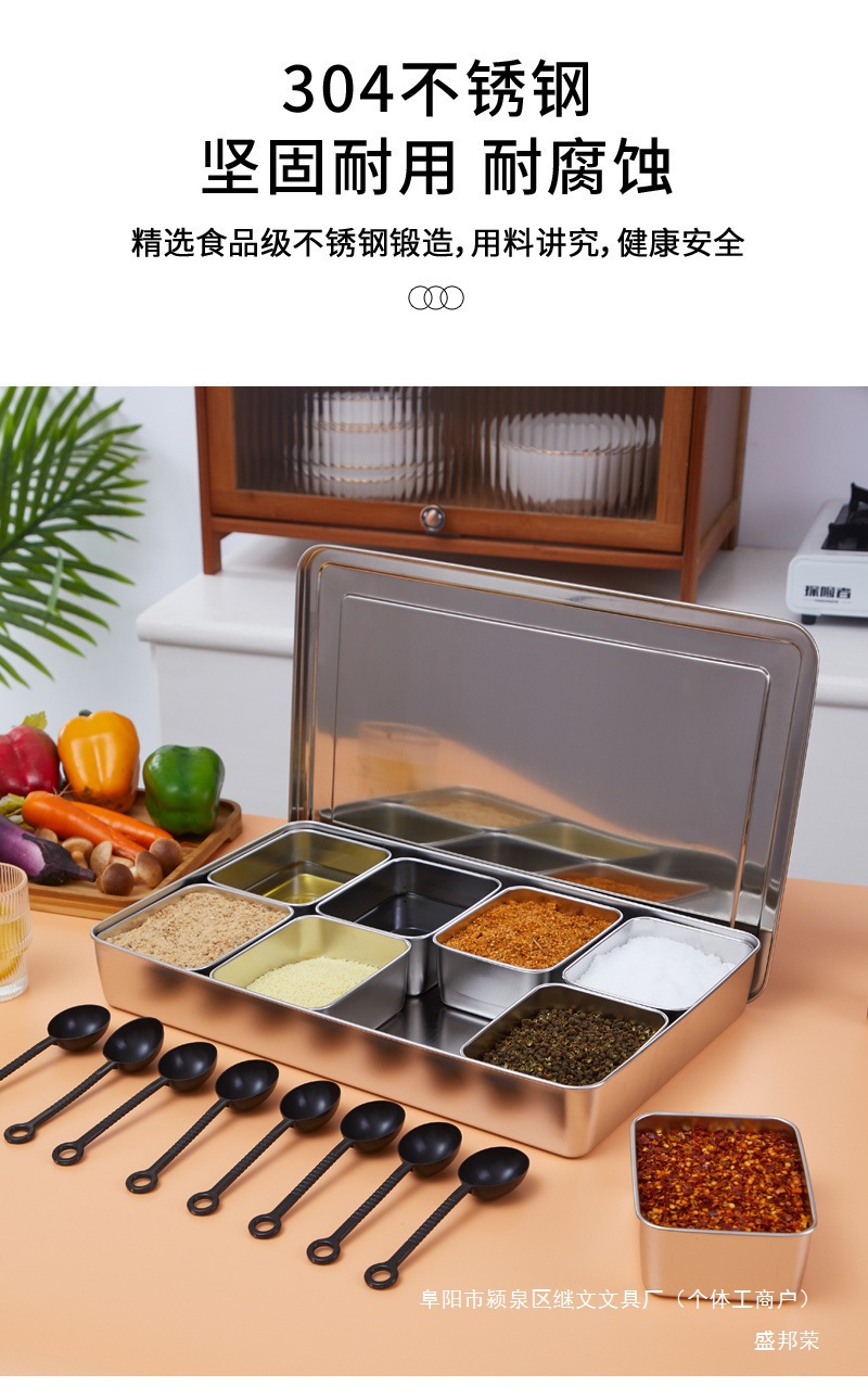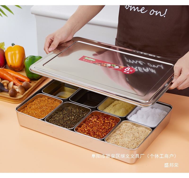 Shengbang Rong 冷凍粉末材料蓋付き業務用小型材料一体型 8 グリッドボックス調味料組み合わせセット調味料ボックス収納ボックス
