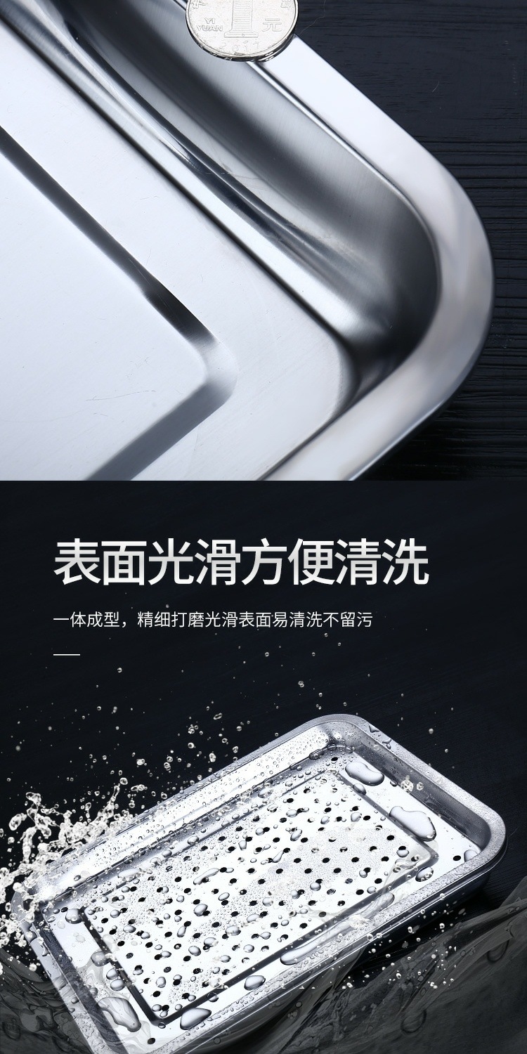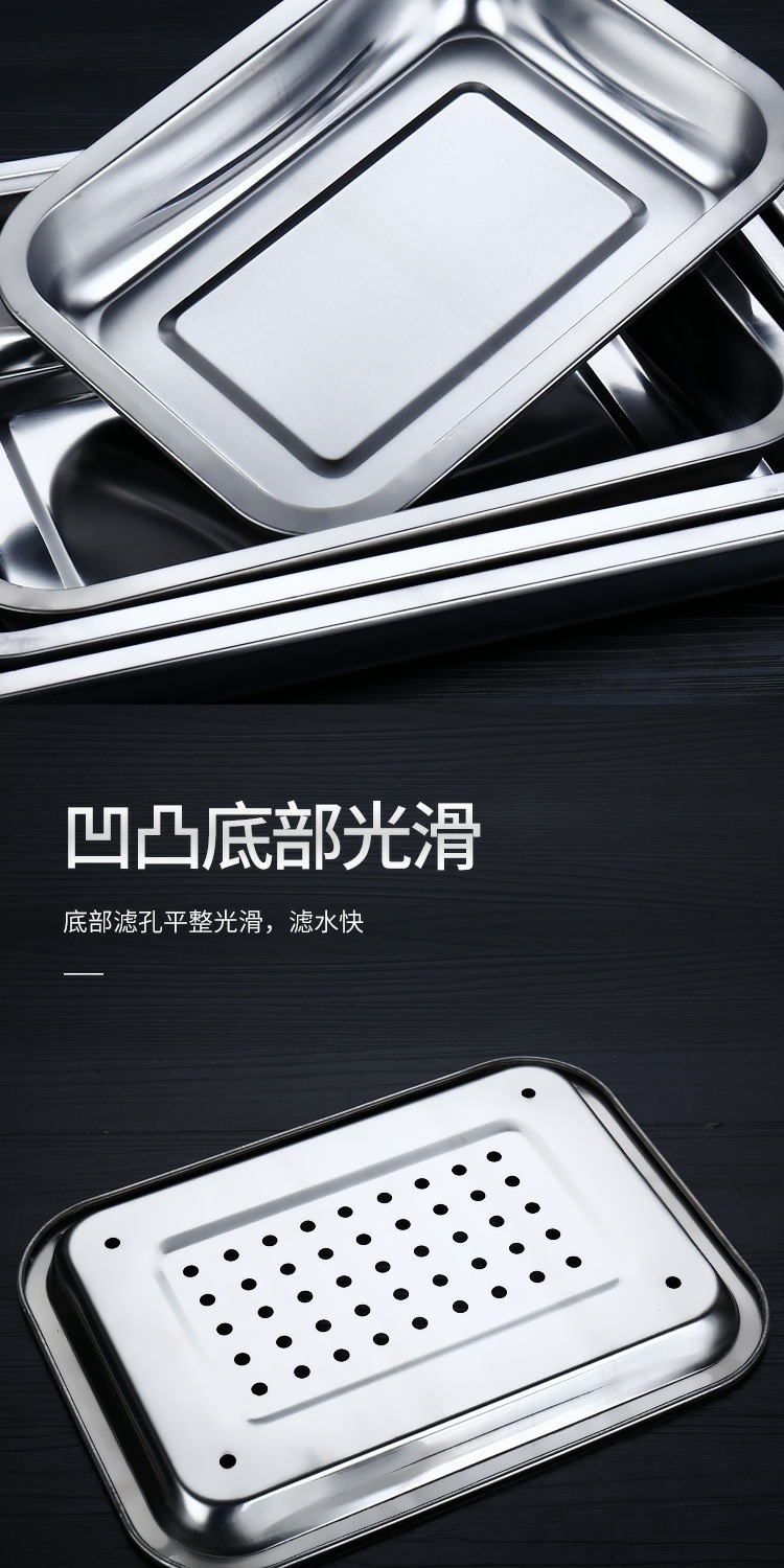 水切り角皿304ステンレス長方形茶皿トレー二重餃子皿業務用水切り皿蒸し皿漏れ皿