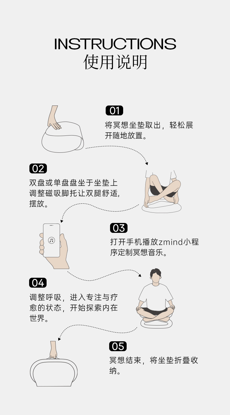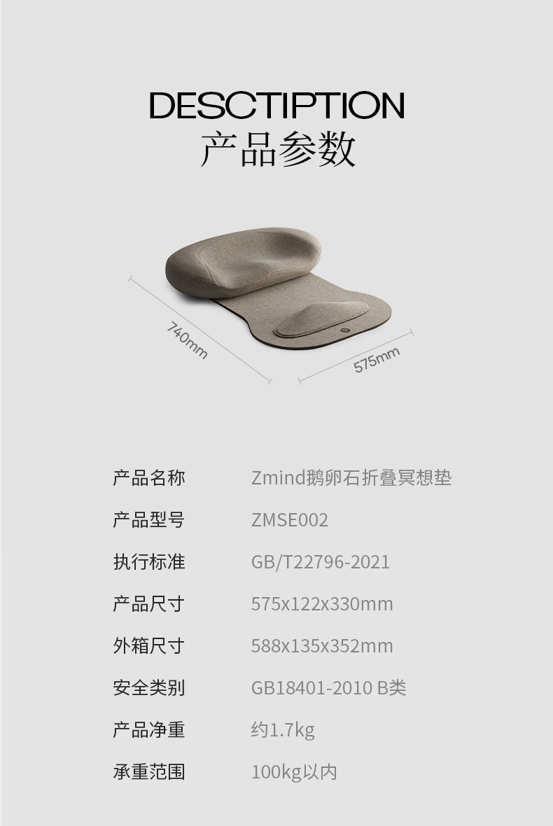 Zmind鹅卵石折叠冥想垫地上看书打坐垫禅修 冥想瑜伽便携kω