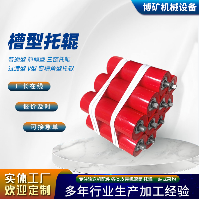 定制烤漆槽型托辊矿用输送机缓冲托辊输送皮带托辊平行无动力滚筒
