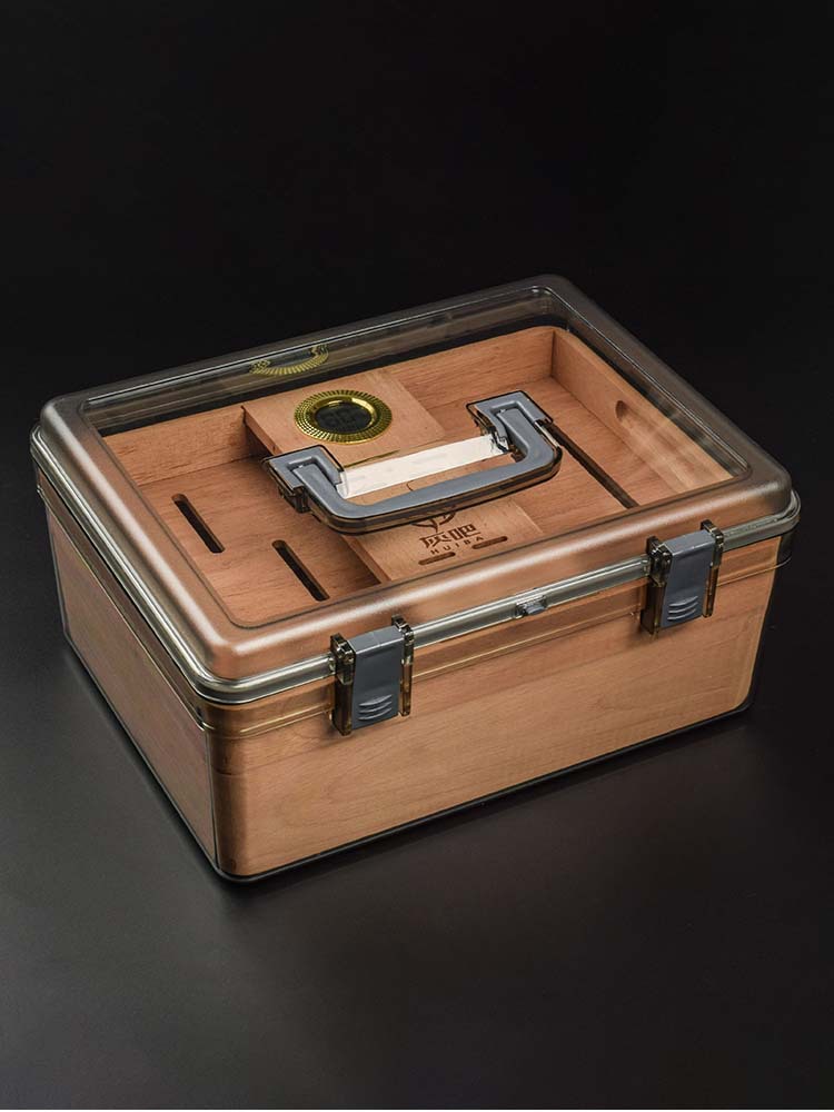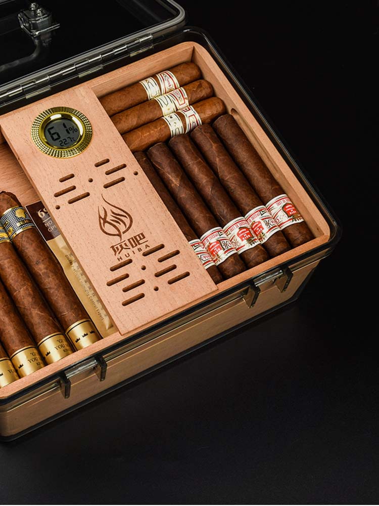 灰吧/HUIBA スペイン産杉材 蜂の巣型シガーモイスチャライザー 密閉式 高容量シガーボックス