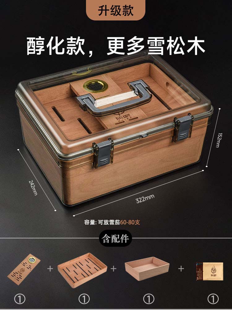 灰吧/HUIBA シガー保湿ボックス 杉材熟成シガーケース ポータブルシガーボックス 密閉シガーボックス