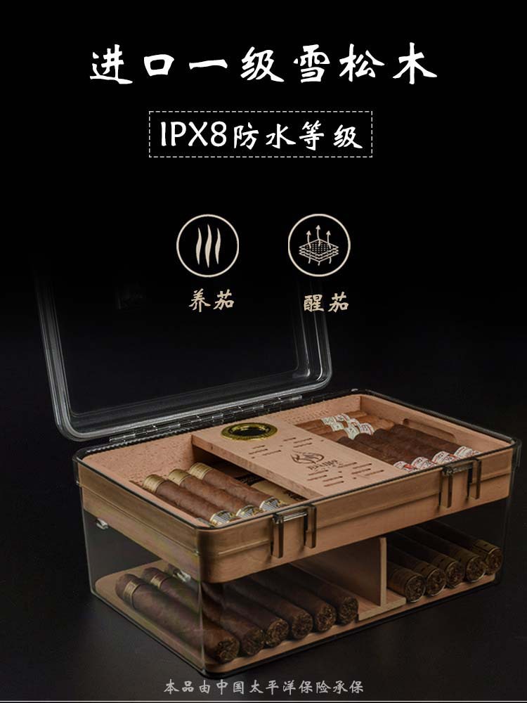 スペイン杉材シガーモイスチャライザー、密封されたプロ仕様のシガーボックス、大容量、防湿防虫