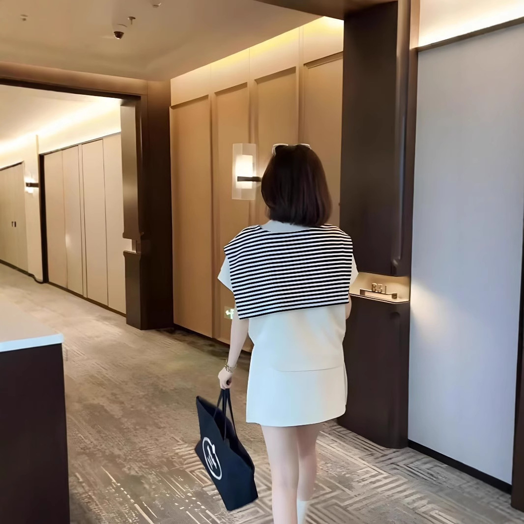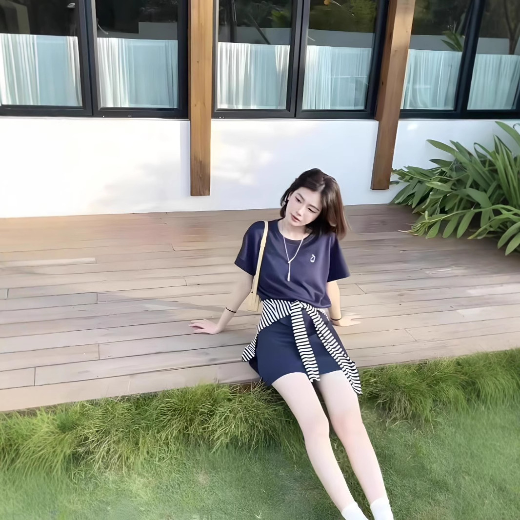 東大門ファッションカジュアル服セット女性夏の新型洋気が痩せている半袖ズボンのスカートの三点セットが湿っている