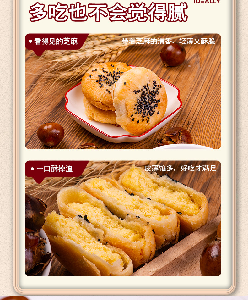 低糖栗子酥纯手工老式板栗饼香酥绿豆酥饼子馅饼糕点零食早餐宵夜