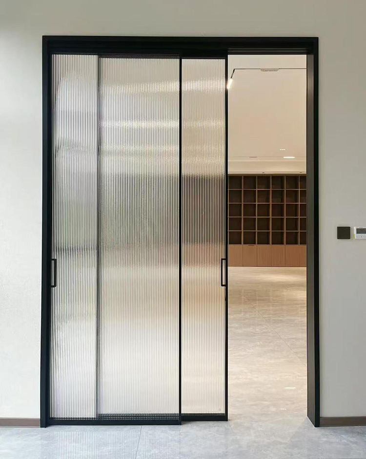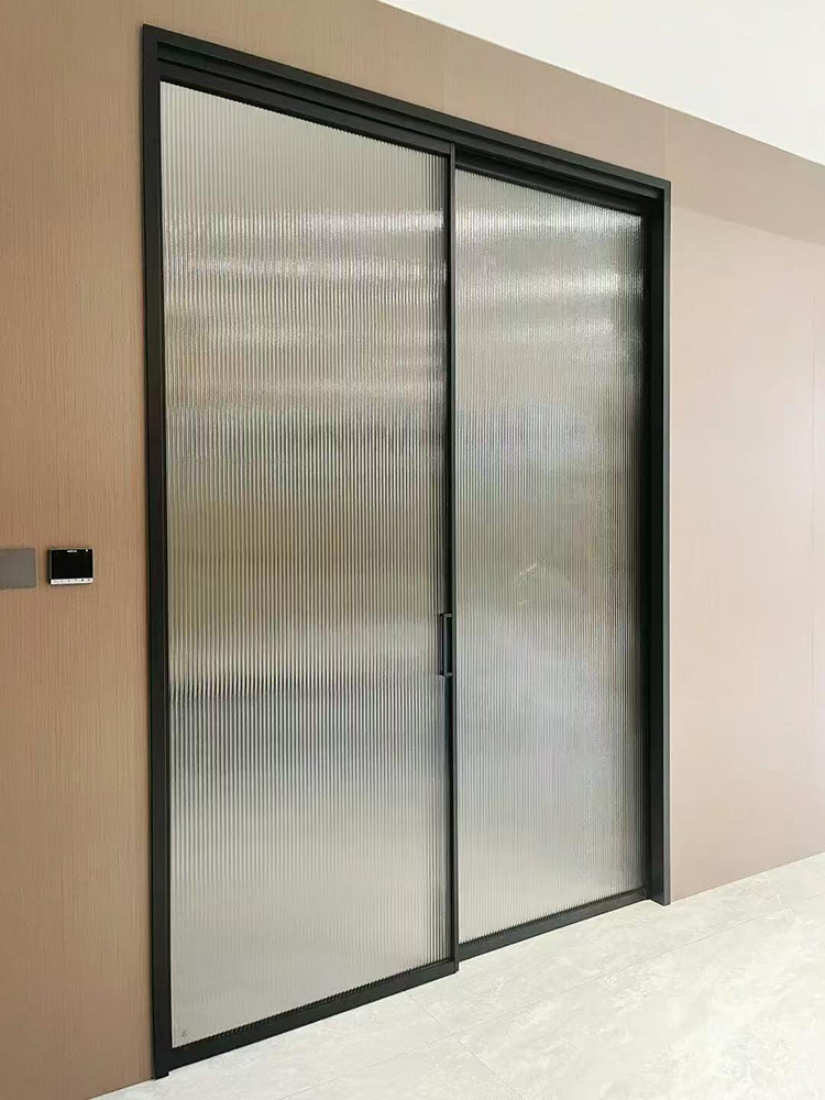 非常に狭い幽霊門トロリー見えないガラス遮断門アルミ合金ガラス障子トイレキッチンフラットドア