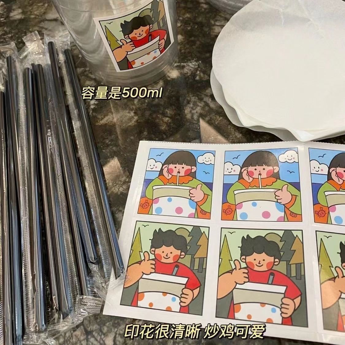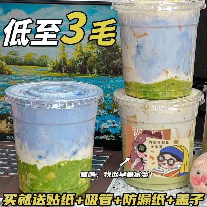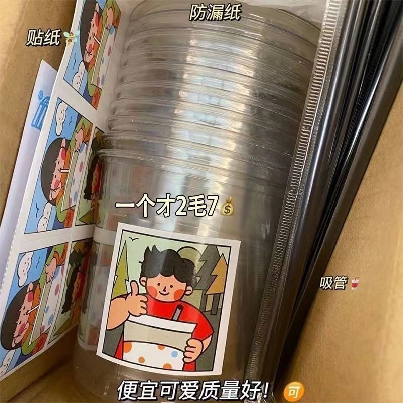奶茶杯子批发带盖贴纸网红爆火小红书咖啡杯同款塑料吸管外带