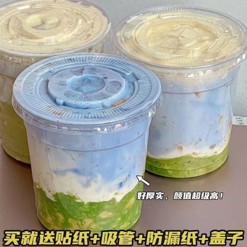 Ins風使い捨て冷たい飲み物カップPETプラスチックカップ蓋付きネットレッドミルクティーカップレモン茶コーヒー厚い包装カップ
