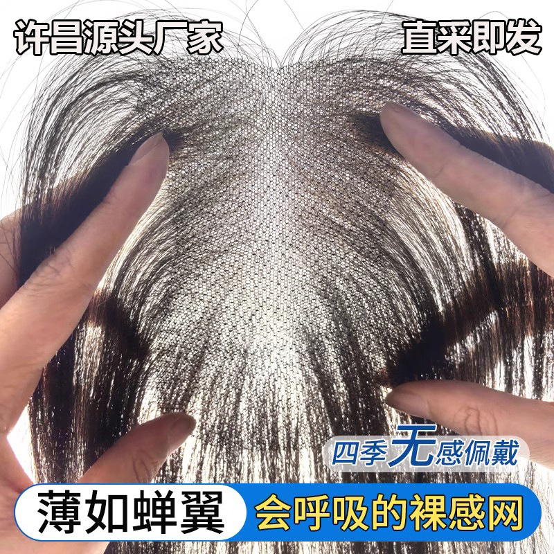 髪の量を増やすための工場直販の高頭頂かつら、本物の髪、中間分け、白髪をカバーする頭頂部、薄い偽前髪