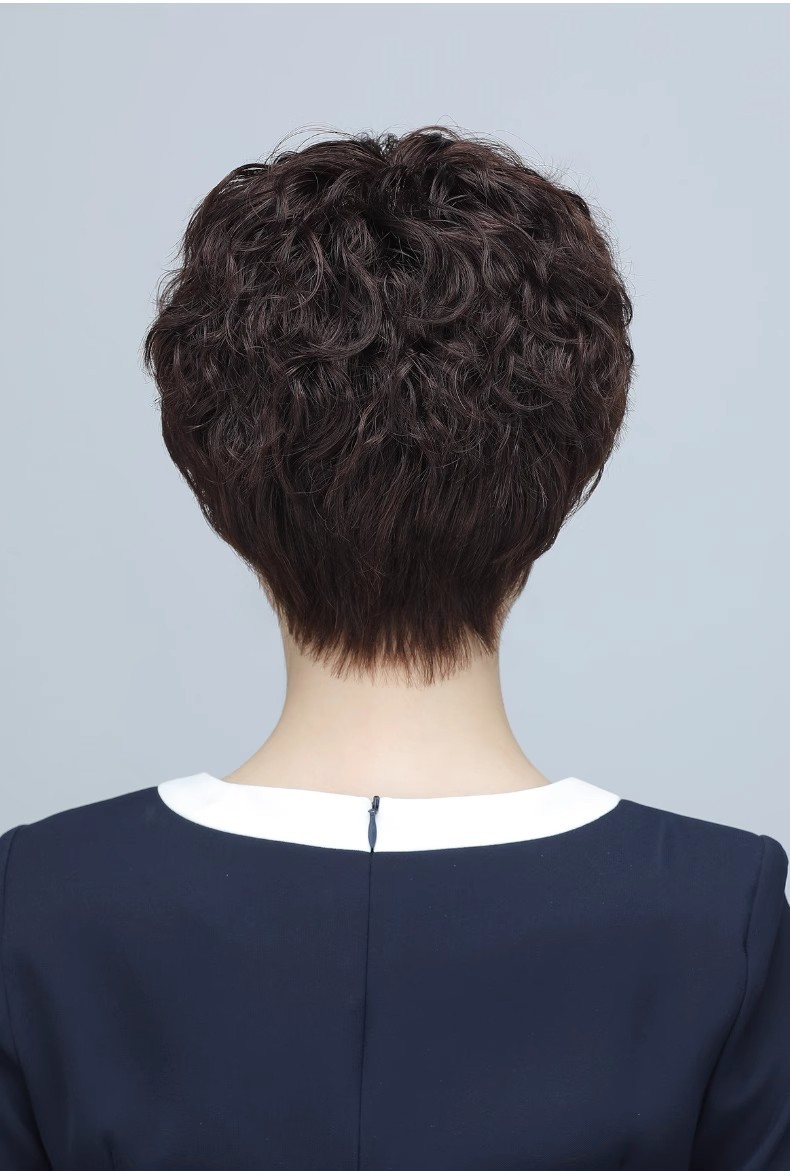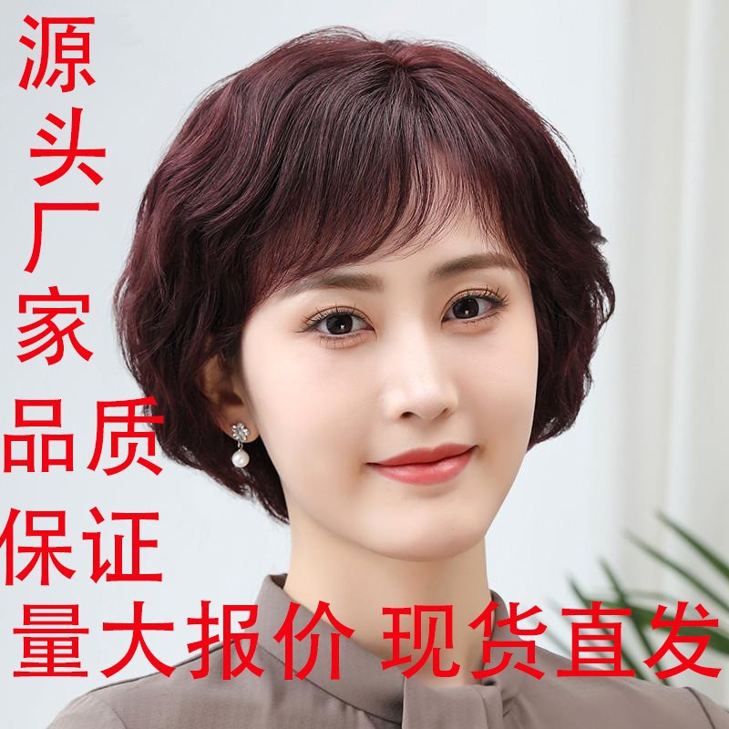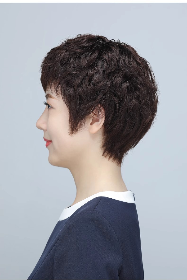 中高年女性向けウィッグ、お母さん向けフルヘッドギア、本物の髪の短い巻き毛、フル人毛、ナチュラルな夏用薄型ヘアギア