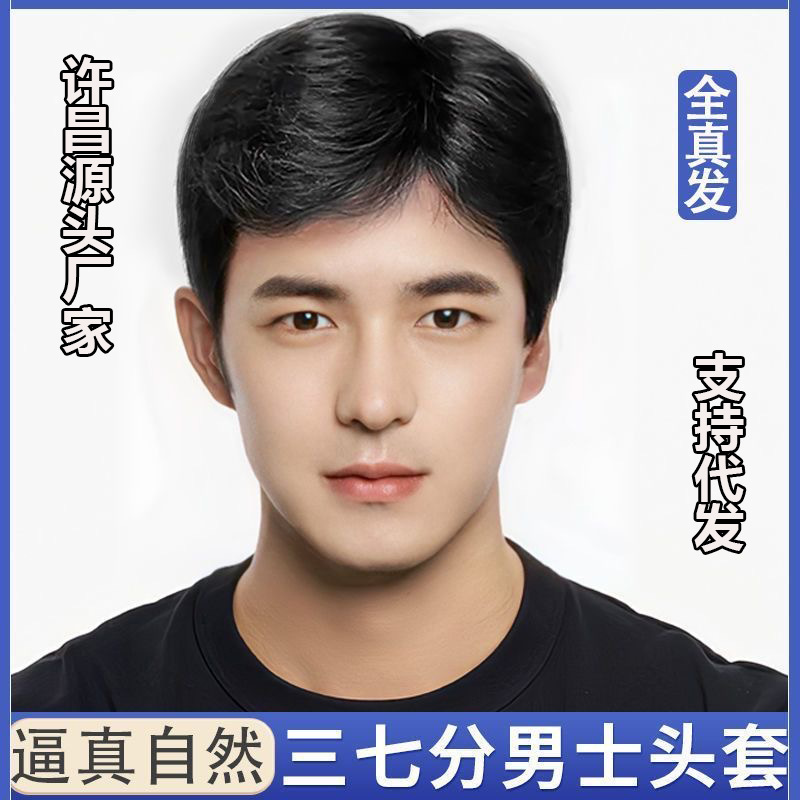工場直販 ショートヘアの男性用ウィッグ、中高年男性用フルヘッドギア、軽くてハンサムな3/7ヘアスタイルのヘッドギア