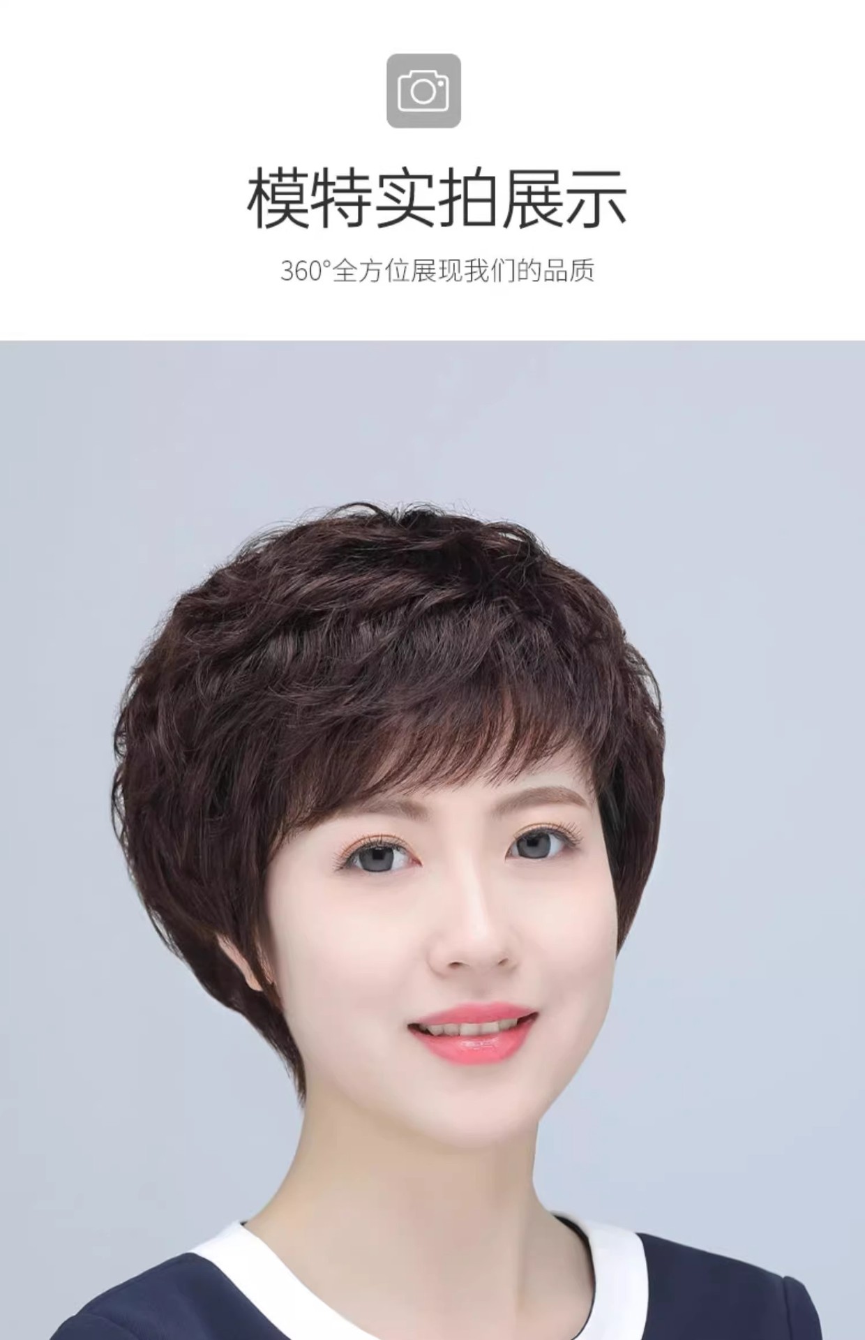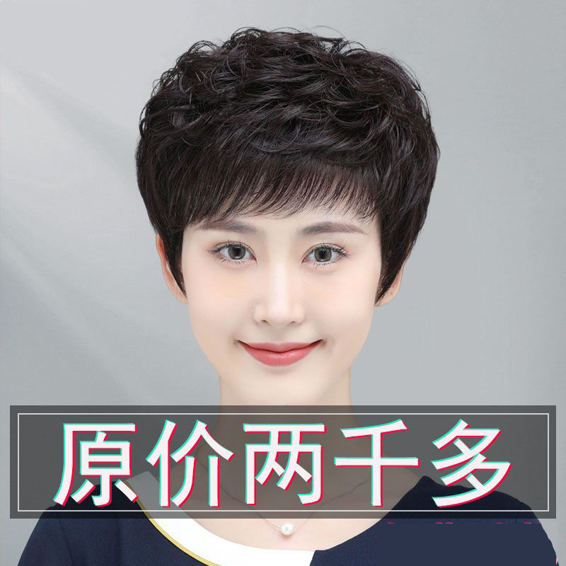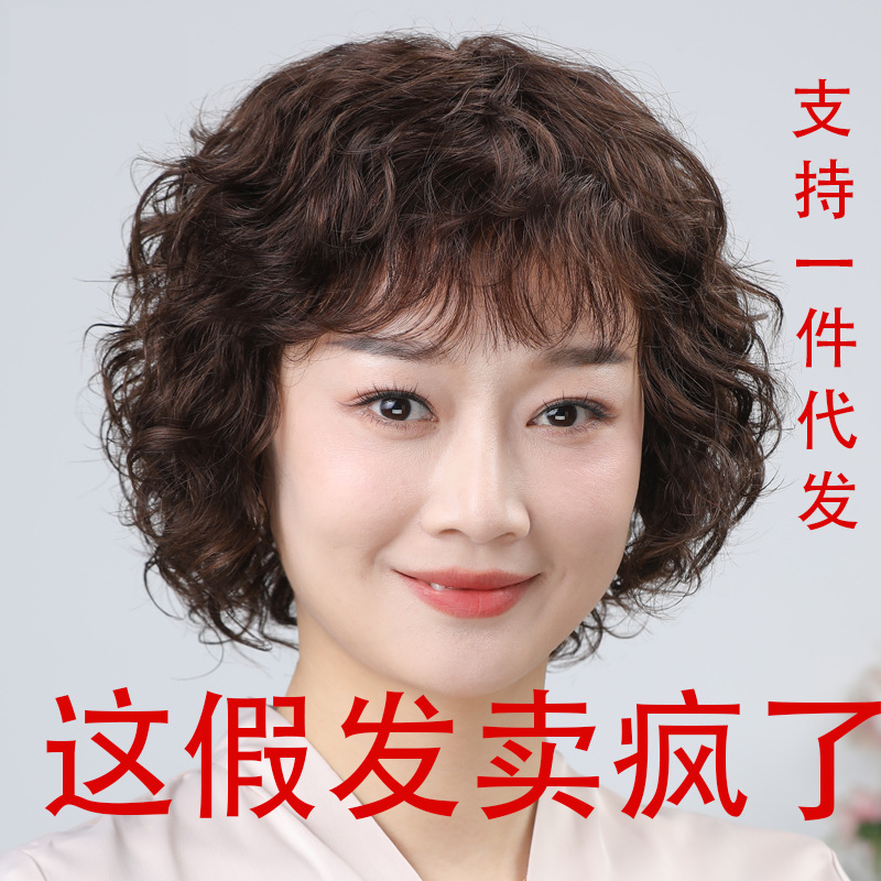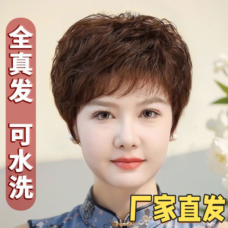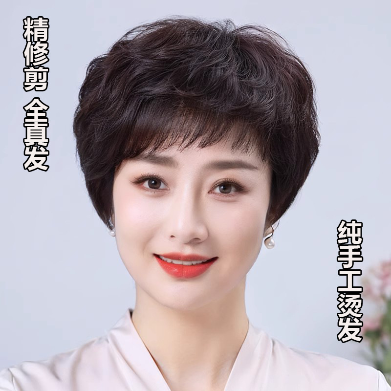 假发女短发真发全真人发妈妈女士全头套中老年短卷发真头发套自然