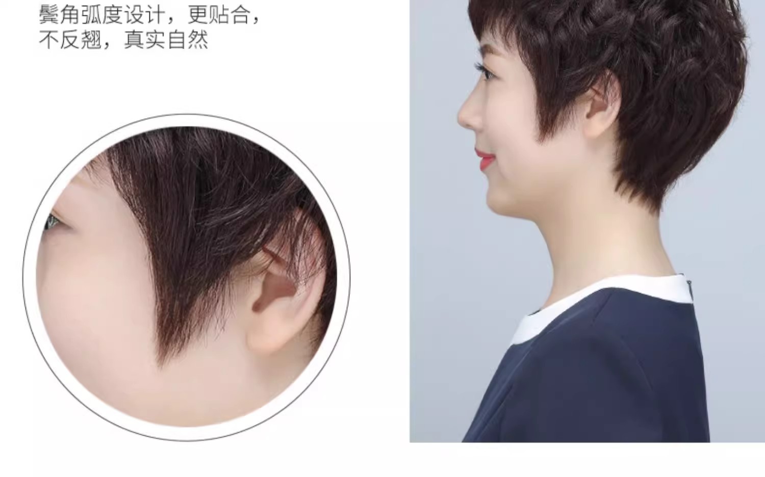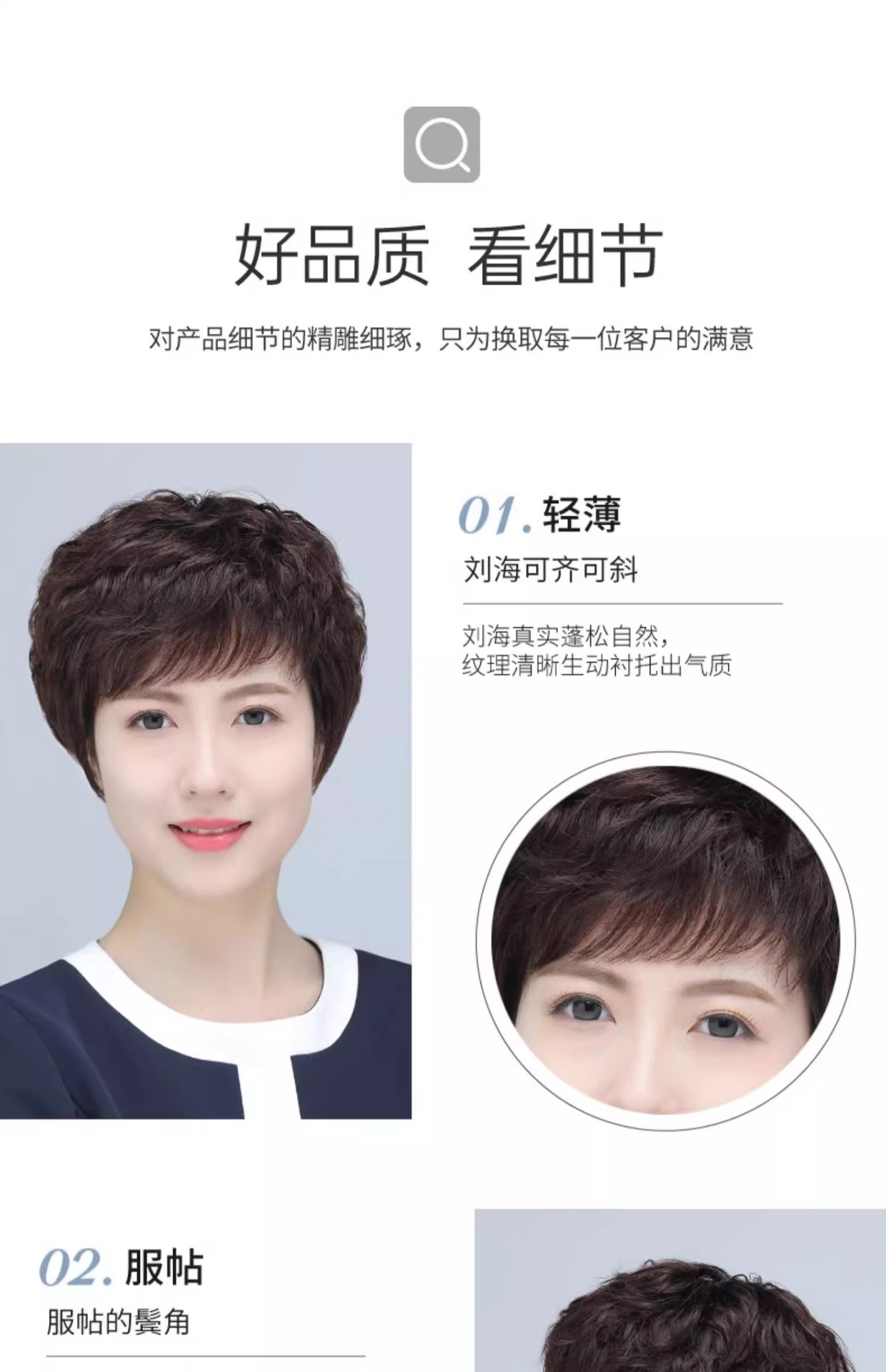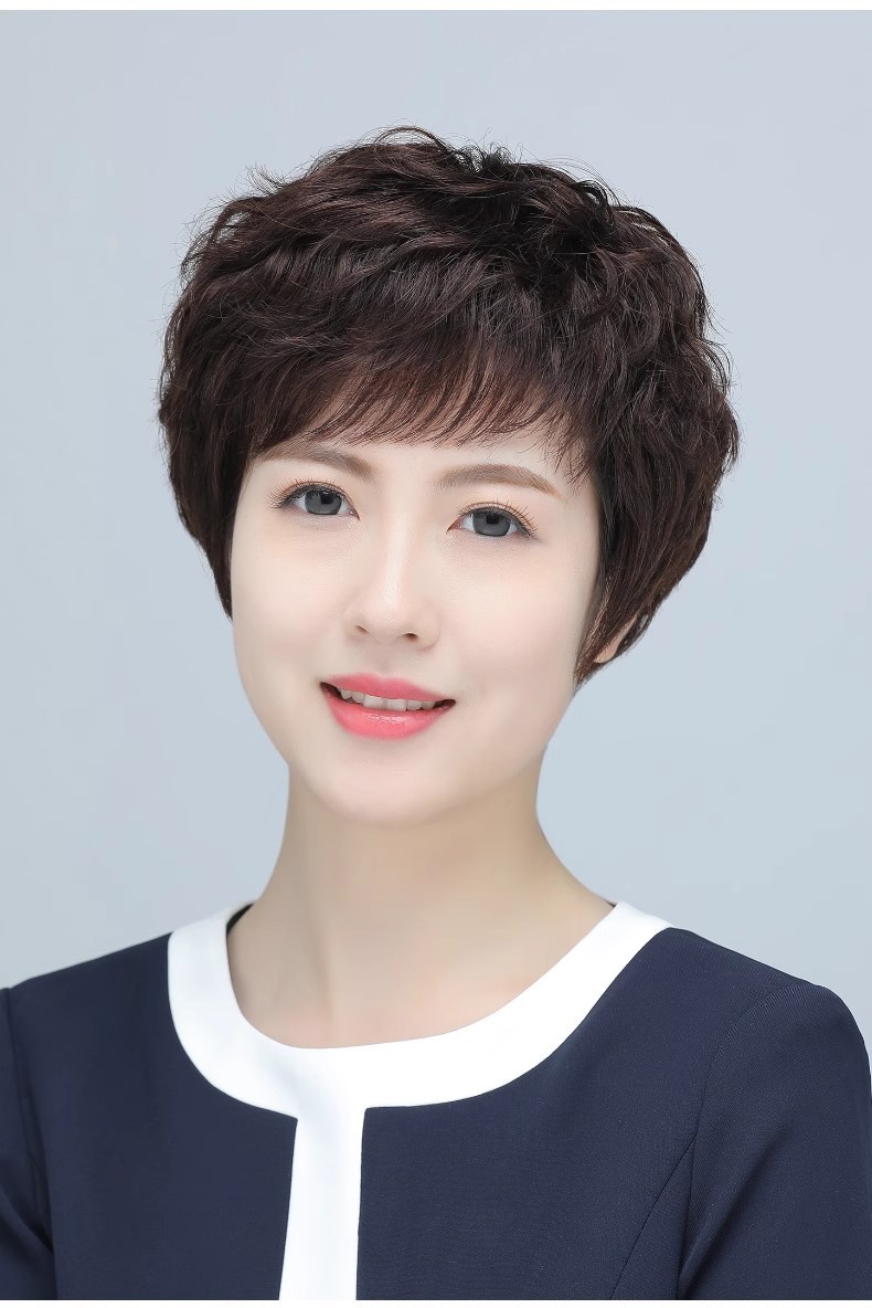 假发女短发真发全真人发妈妈女士全头套中老年短卷发真头发套自然