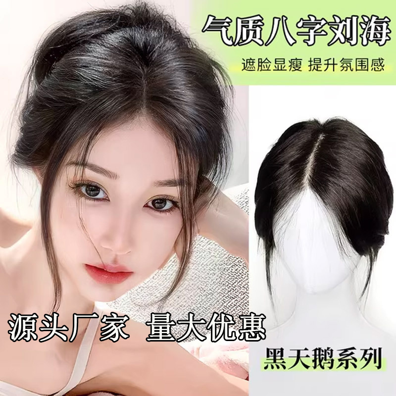 メーカー直販胎毛八字前髪かつら女性片全真人髪自然額無痕髪線偽前髪