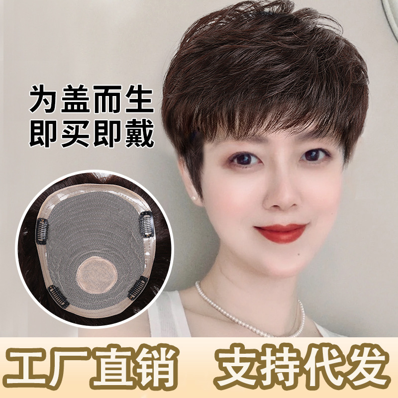 假发女片头顶补发块全真人发中老年妈妈盖遮白发秃顶隐形无痕假发