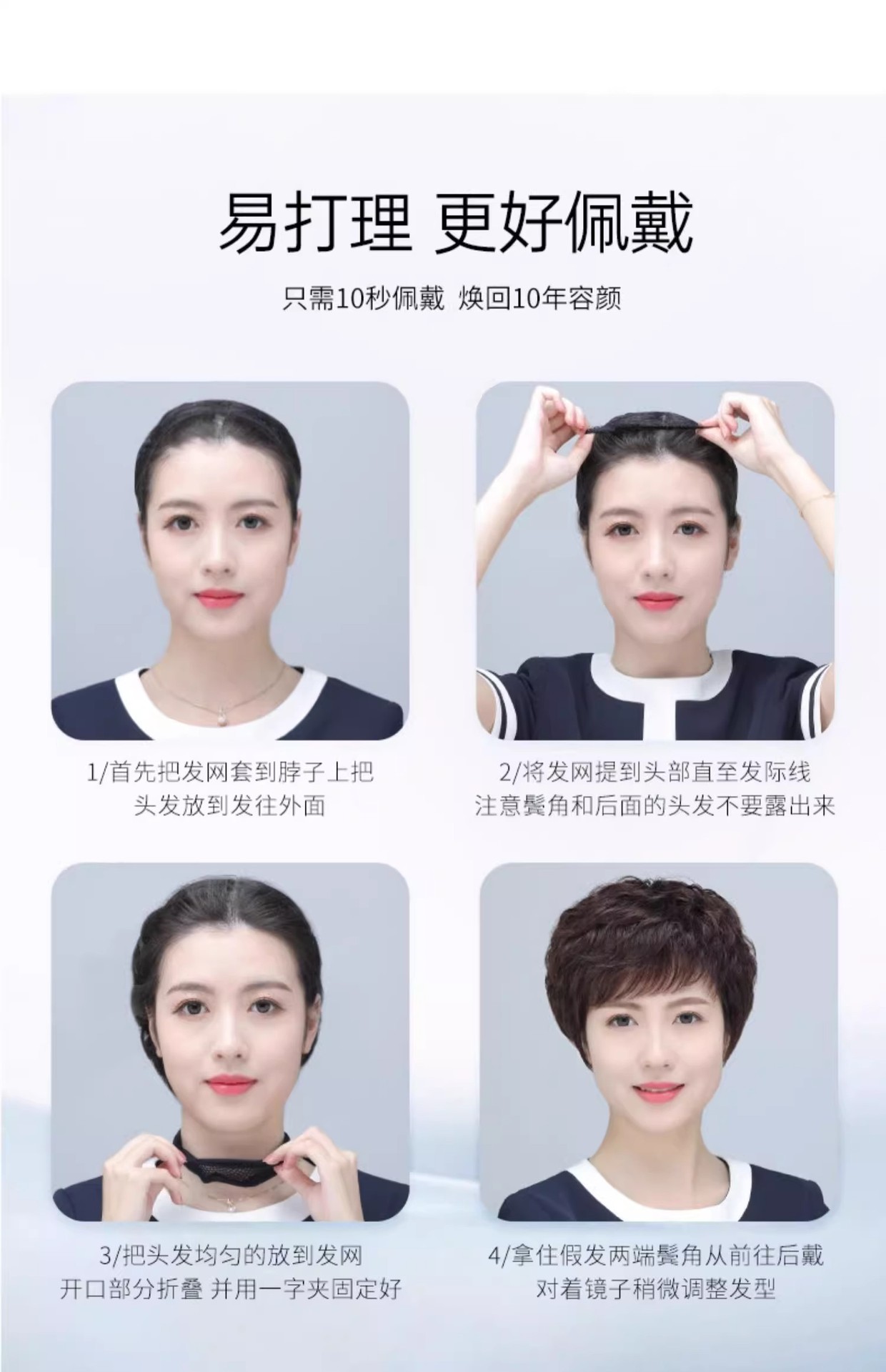 厂家直发假发全头套女真人发丝自然短卷发假发套中老年假发女真发