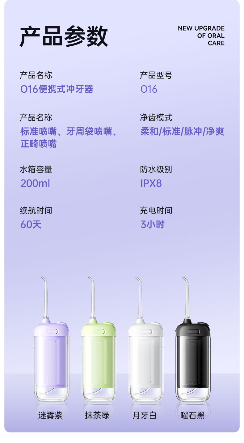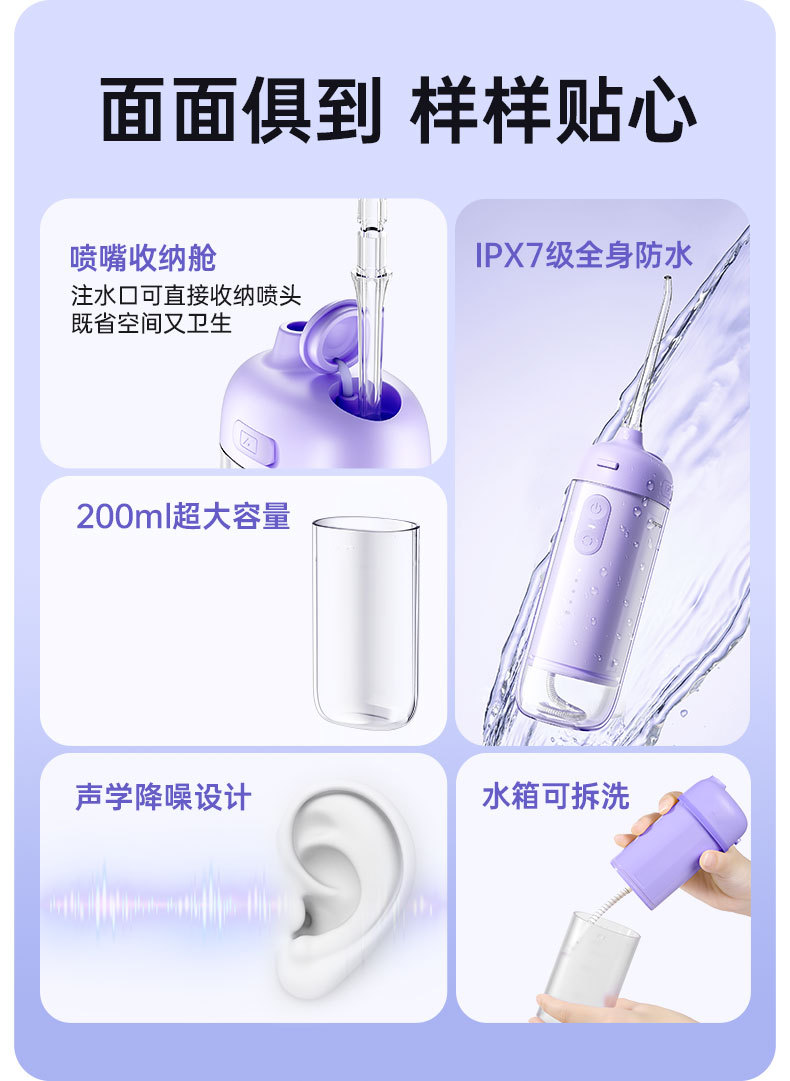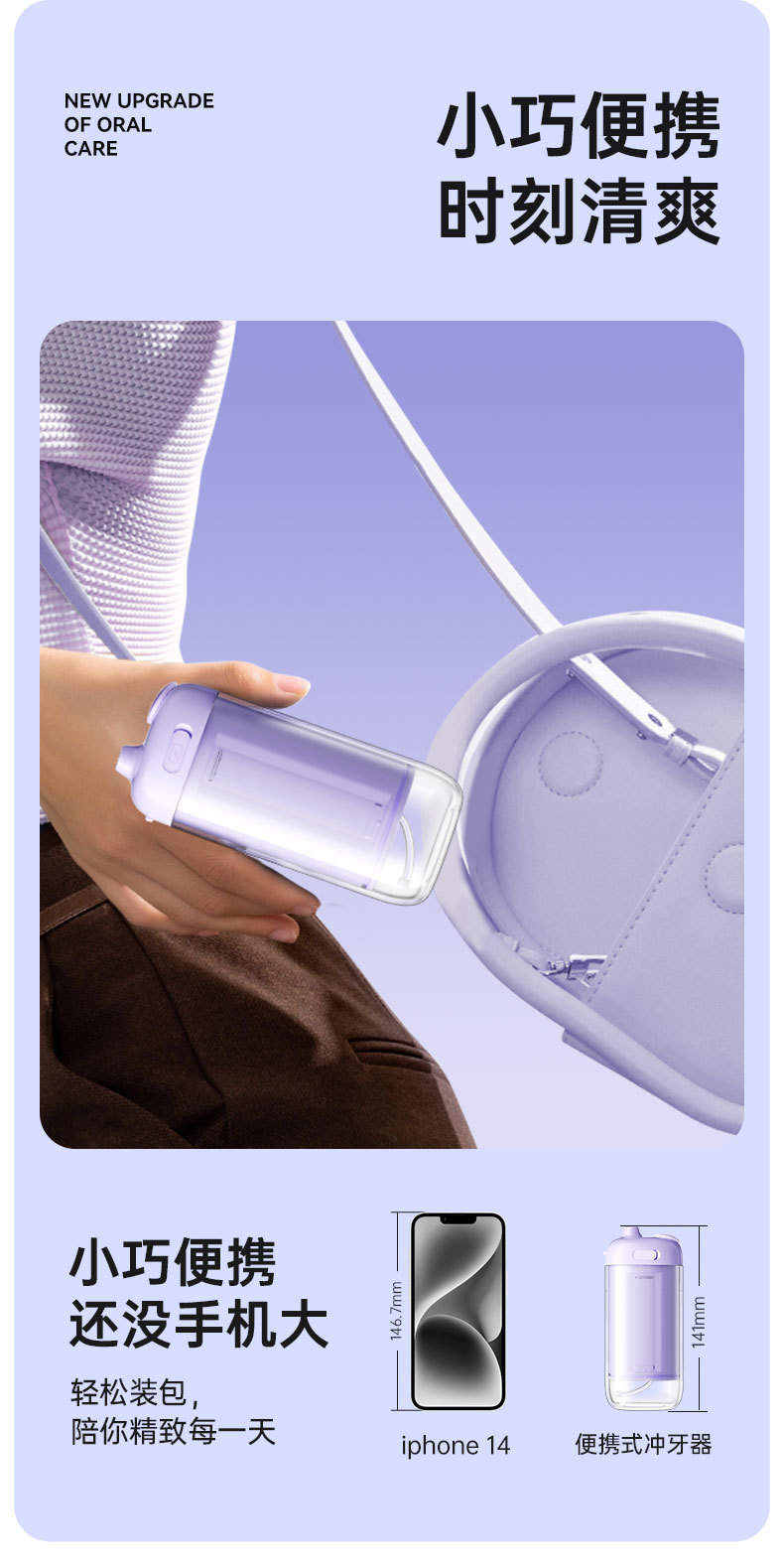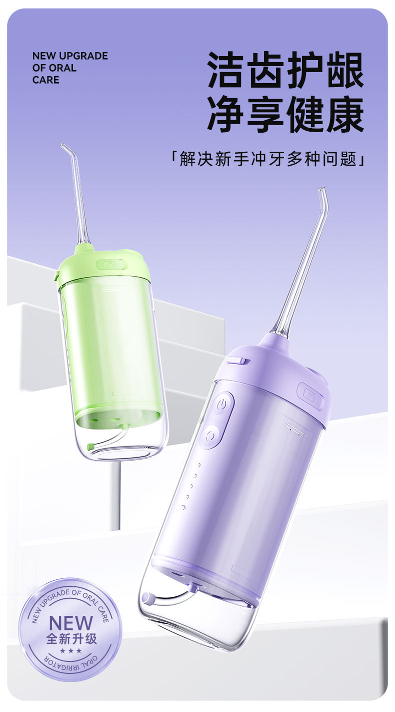 新款杀菌冲牙器电动便携口腔清洁洗牙器正畸专用抽拉冲洗器水牙线