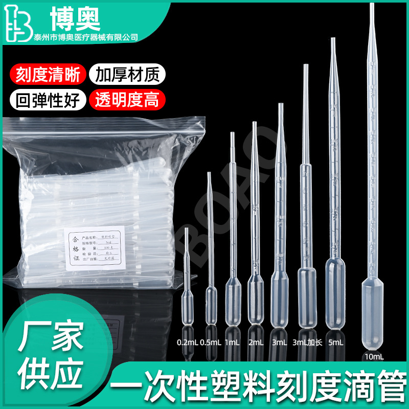 一次性滴管巴氏吸管实验室可用移液吸管带刻度一次性塑料滴管