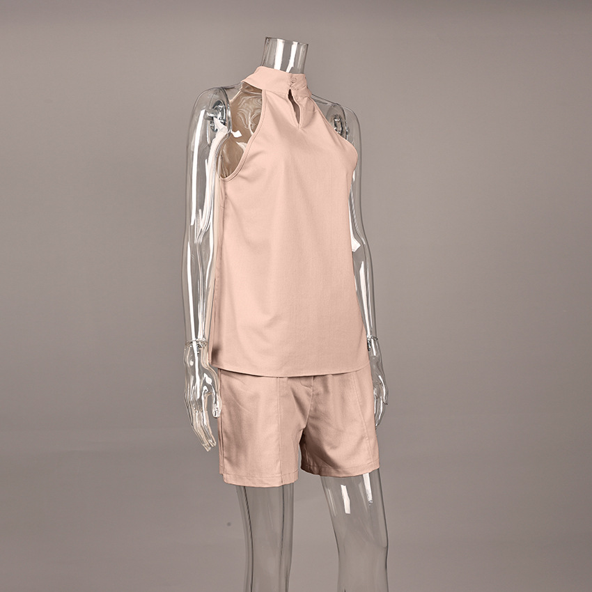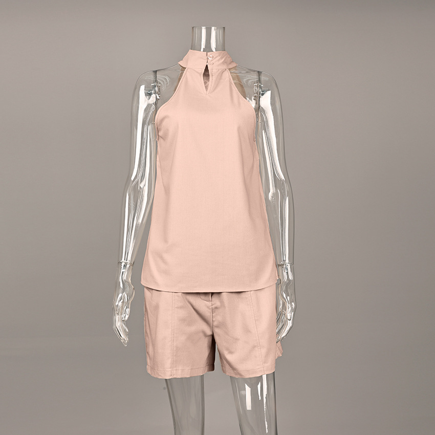 欧米風クロスボーダーレディースファッション2026春夏新作、上品なVネックホルターネックノースリーブベストとカジュアルショートパンツのセット